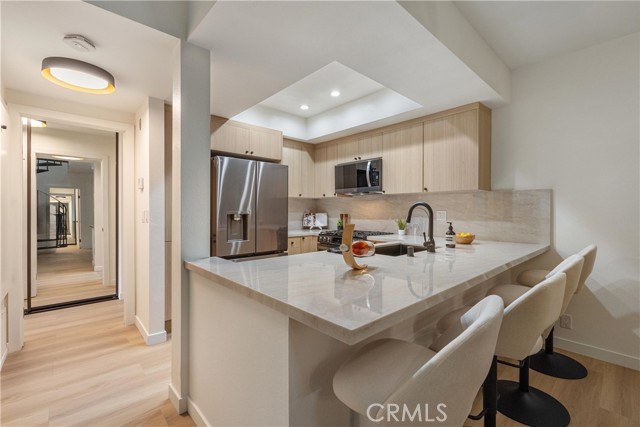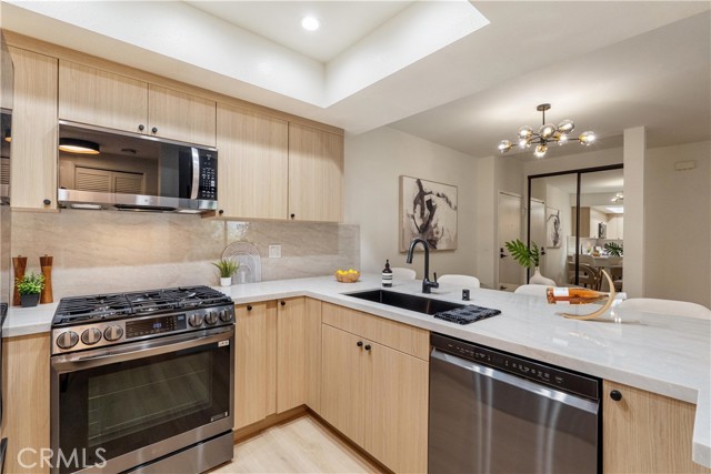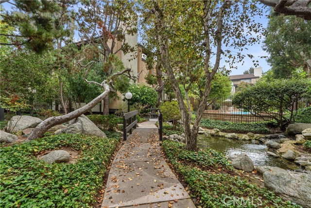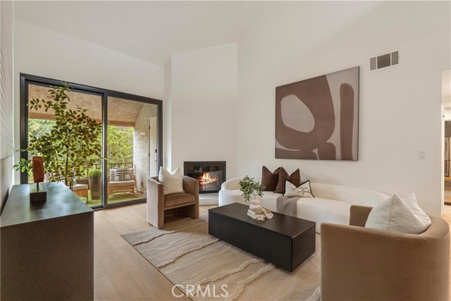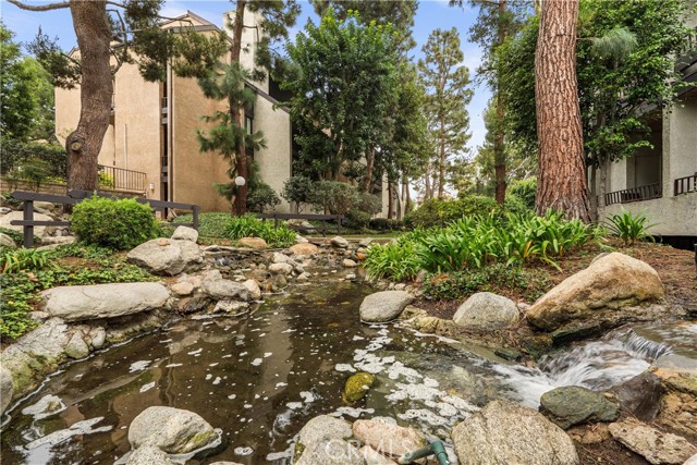 Enjoy soaring open ceilings, abundant natural light and stunning treetop outlook in this beautifully updated corner loft unit. This upper-level home offers exceptional privacy with no neighbors above or to the side, direct elevator and stair access, a spacious open layout, and generous wall space ideal for art or decor. The living area features a cozy fireplace and opens to a serene balcony overlooking the lush, landscaped grounds with flowing streams and tranquil water features. The loft provides flexible space for work or relaxation, along with additional storage space. The kitchen and bedrooms include moderns upgrades such as new appliances, recessed lighting, and natural sky light. Two gated garage parking spaces, resort-style heated pool, and a secure, well-maintained community complete this inviting coastal retreat!