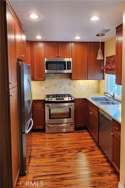 Highly upgraded 2 bedroom 2 full bath 2nd floor condo. Freshly painted with dual pane vinyl windows throughout, a beautiful kitchen with granite counters and 2 full custom bathrooms. Vaulted ceilings throughout, fireplace in front room, indoor full-size laundry, dining area with ceiling fan. Quiet location within walking distance to shopping, school, and the 73 toll-road. Central forced air heating and A/C and recent full re-piping with Pex. Private patio with gate and storage. Carport w/extra Storage and availability of an extra parking space. Water & trash included. Resort style association pool and spa.