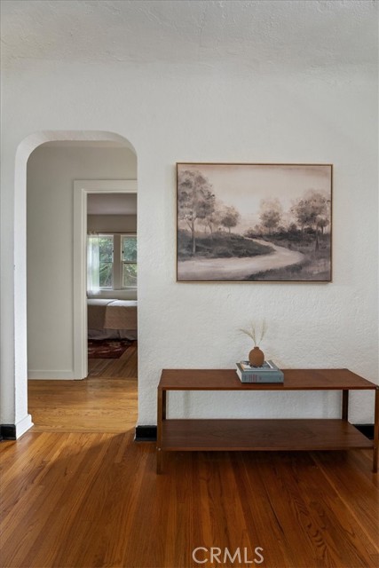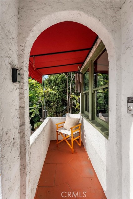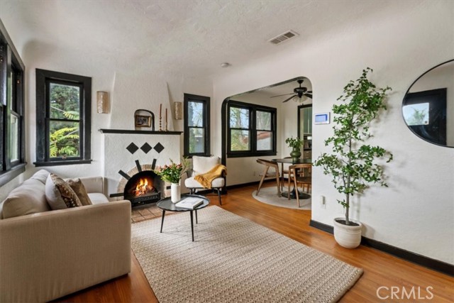 Set above the street behind lush landscaping, this 1929 Echo Park Spanish Revival is a true trophy property. Through the arched entry, you will find a patio with stunning views. The formal living room features hardwood floors, walls of windows, a stunning fireplace surround and arched doorways on both sides. Through the formal dining room, you will find an updated kitchen with raised ceilings, peaceful views of the yard, and a breakfast table. Beyond the kitchen is a family room with a private patio and media system that controls the zoned interior/exterior speaker system. The primary bedroom and en-suite bath are the newest addition to the home bringing the vibes of a luxury resort and spa featuring vaulted ceilings, built ins, designer finishes, and remarkable natural light shining through the large windows. The secondary bedrooms are well appointed with generous windows, closet space, and a remodeled bathroom. Step outside to a remodeled backyard oasis featuring a jacuzzi, fire-pit, outdoor kitchen, multiple dining and entertaining spaces and a detached two-level bonus studio. Facing the street there are 4 temperature controlled, generous sized, finished garage spaces. Enjoy the thoughtful upgrades like the central HVAC, laundry area, two tankless water heaters, and ADT. Do not miss this one of a kind him in one of the hottest neighborhoods in LA.