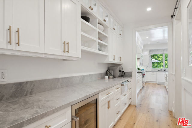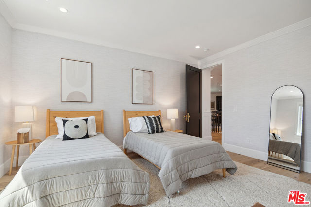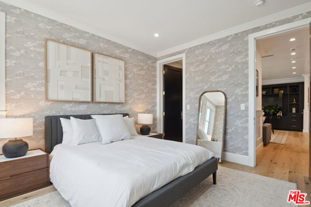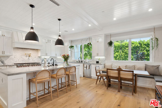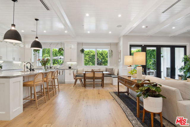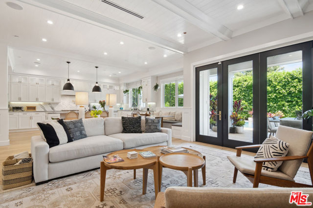 Modern Farmhouse in the Melrose District near the West Hollywood border. Built in 2016 and thoughtfully updated in 2023, this family-friendly 5-bedroom, 5.5-bath residence blends classic design with modern comfort. Comprehensive 2023 updates include full renovations of all bathrooms and the kitchen, new mahogany decking, refinished flooring, updated lighting, and numerous system upgrades. The main level features a chef's kitchen with Sub-Zero and Wolf appliances, marble counters, dual dishwashers (including a drawer-style model), and a large island opening to the living area and backyard. Additional spaces include a home office, media/theater room, formal dining room, and one ensuite bedroom. Upstairs offers four ensuite bedrooms, including a primary suite with a private terrace, fireplace, and spa-style bath. Outdoors, enjoy a heated pool and spa, rebuilt mahogany deck, outdoor fireplace, and multiple lounge areas surrounded by mature landscaping.Additional highlights include two indoor fireplaces, whole-home audio (upgraded Control4 system with new speakers), motorized blinds, water-filtration and softener systems, fiber internet, and a Tesla EV charger. The two-car garage is currently used as a gym. Gated parking and a private backyard complete this modern, turnkey retreat near the best of Melrose and Fairfax. This home is offered fully furnished, including all appliances and furnishings (excluding certain personal art and effects). Landlord provides weekly gardening and pool service. Tenant is responsible for all other utilities, including gas, electric, water, trash, and cable/internet. Pets considered with an additional deposit.