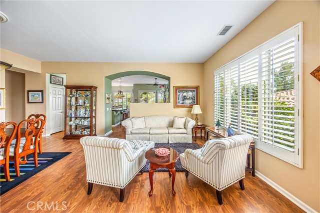 Discover resort-style living at its finest in the highly sought-after Trilogy at Glen Ivy, an exclusive 55+ active adult community known for luxury, lifestyle, and premier senior living in Southern California. This beautiful 2-bedroom, 2-bath home with a spacious office offers serene views and unmatched privacy—nestled beside tranquil avocado groves with only one neighboring home. Step inside to an inviting open floor plan filled with custom shutters and natural light, perfect for both entertaining and everyday comfort. The bright, well-appointed kitchen opens seamlessly to a generous living area that flows effortlessly to the outdoor patio—an ideal spot to enjoy peaceful mornings and scenic views. Residents of Trilogy at Glen Ivy enjoy the world-class resort amenities, including an 18-hole championship golf course, a state-of-the-art fitness center, indoor and outdoor pools and spas, scenic walking and jogging trails, BBQ areas, bocce ball, billiards, lighted tennis courts, and a vibrant amphitheater for community events. The stunning clubhouse and on-site restaurant offer endless opportunities for socializing, dining, and enjoying the active-adult lifestyle. Conveniently located near shopping, Tom’s Farms, the world-famous Glen Ivy Hot Springs, and just a short drive from Orange County, this home sits in one of the area's most desirable gated senior communities—offering the perfect blend of relaxation, recreation, and lock-and-leave convenience. Don’t miss this rare opportunity to own a truly exceptional property in one of the top-rated 55+ resort communities in Southern California—priced to sell and ready for you to call home!