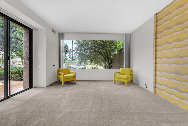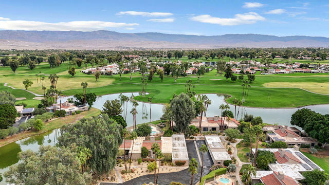 Tucked within the serene grounds of Mission Hills Country Club, this 1,984 sq ft residence offers a quietly captivating blend of water, light, and architectural warmth. Just a few steps from the sparkling pool, the home rests along a peaceful lake with the golf course unfolding in the distance--an ever-present backdrop that shapes daily life with calm and beauty.The living room rises under vaulted ceilings accented with exposed wood, creating a sense of openness anchored by a classic fireplace. Sunlight moves easily through the space, drawing attention to the views and giving the home an easy, unforced elegance.With two bedrooms and two baths, the layout is thoughtfully balanced--comfortable enough for full-time living, effortless enough for a lock-and-leave getaway. A private garage adds convenience, while the community's lush surroundings and resort amenities enhance the feeling of escape.In this lakeside setting, the pace shifts, the days feel lighter, and the desert reveals a quieter side of itself.