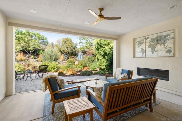 Welcome to 7964 Auberge Circle, an elegant two-story retreat in the exclusive, gated 55+ community of Auberge at Del Sur. Upon entering the 2,923 sq. ft. residence, you’re immediately greeted by an abundance of natural light, soft neutral tones, and warm natural wood flooring. At the heart of the home is a chef-inspired kitchen featuring top-of-the-line appliances, rich custom cabinetry, granite countertops, and a generous center island with seating. The kitchen seamlessly connects to the expansive great room, offering ample space for relaxation and gatherings. Glass doors disappear and open to a stunning outdoor/covered living space, complete with an outdoor fireplace, seating areas, and lush landscaping—an idyllic setting for entertaining or unwinding in total privacy. The main-level primary suite is a luxurious sanctuary with direct access to the backyard. This spacious room features a comfortable sitting area, an oversized walk-in closet, and a spa-inspired bath with dual vanities, a soaking tub, and a glass-enclosed shower. Also on the main floor is a dedicated dining room ideal for intimate dinners or hosting guests, a private home office, a guest bedroom with en-suite bath, and a full laundry room. The second level offers a peaceful escape with a generous bonus room perfect for a fitness area, media room, or creative space. An additional guest bedroom with a full bath completes the upstairs, all framed by sweeping views of Black Mountain and west-facing sunsets over rolling hills. See Supplement... Auberge residents enjoy access to a spectacular 12,000+ sq. ft. clubhouse featuring a fitness center, pool, spa, and resort-style amenities. With privacy, security, and close proximity to top-tier shopping, dining, and major freeways, this home delivers the best of serene living and modern convenience. Welcome home.