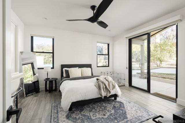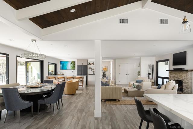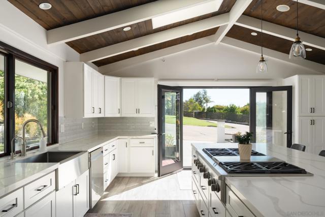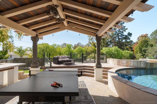 Welcome to 15102 Sun Valley Lane — a private resort-style sanctuary tucked within one of North County’s most desirable neighborhoods. Set behind gates on 1.4+ acres, this thoughtfully curated estate offers the perfect blend of peace, privacy, and convenience—just minutes from beaches, dining, shopping, top-rated schools, and everyday essentials. A long, private driveway winds through manicured grounds, mature landscaping, and inviting pathways that set the tone for the experience ahead. Inside, the 3,042 sq ft main residence is airy, bright, and timeless, with a warm neutral palette, crisp white walls, and retractable doors that extend the living spaces seamlessly outdoors. The chef’s kitchen is a striking focal point, featuring white and black stone countertops, custom cabinetry, premium appliances, and generous island seating. The great room is designed for effortless living and entertaining, offering multiple gathering spaces — a family lounge, dining area, and a chic wet bar with wine fridge, additional dishwasher and bar seating — all opening to the resort-inspired backyard with new La Cantina pass-through window and indoor/outdoor bar seating. Step outside and experience true California living. The 8-ft deep pool and spa overlook expansive green grounds, framed by sleek glass paneling and abundant lounge areas. Host unforgettable gatherings beneath the poolside cabana with outdoor fireplace, and enjoy the estate’s impressive amenities, including a full sports court ideal for pickleball, basketball, or tennis, a Step outside and experience true California living. The 8-ft deep pool and spa overlook expansive green grounds, framed by sleek glass paneling and abundant lounge areas. Host unforgettable gatherings beneath the poolside cabana with outdoor fireplace, and enjoy the estate’s impressive amenities, including a full sports court ideal for pickleball, basketball, or tennis, a putting green, and wide-open lawns designed for play, events, and relaxation. The main residence offers two ensuite guest bedrooms with direct outdoor access. The primary suite is a private hideaway complete with a cozy sitting area, electric fireplace, walk-in closet with center island, and a spa-inspired bath with dual vanities, soaking tub, glass-enclosed steam shower, and an outdoor shower surrounded by nature. A bonus room with skylight currently functions as a home office, offering flexibility for work or retreat. Additional conveniences include a dedicated laundry room, full guest bath, and abundant storage throughout. A separate approx. 782 sq ft guest house provides ideal accommodations for extended-stay guests, multigenerational living, or a live-in nanny, complete with a full kitchen, bar seating, dining area, living room, full bath, and walk-in closet. Located minutes from Del Mar and Solana Beach beaches, the Del Mar Racetrack, Rancho Santa Fe, and premier coastal amenities, this exceptional property embodies effortless luxury, privacy, and the best of Southern California living. Welcome home.