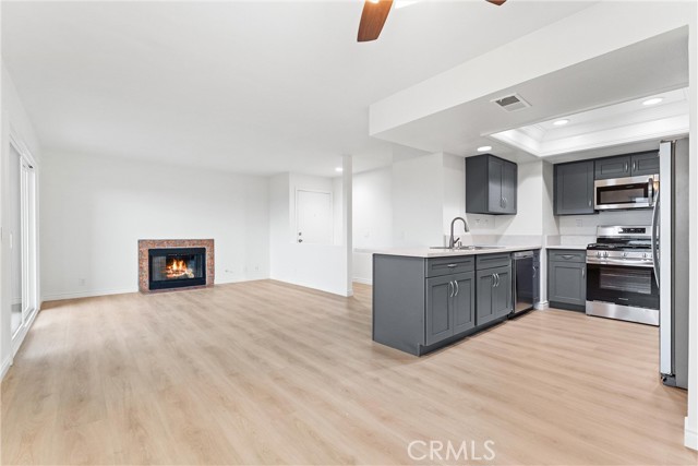 Beautifully Renovated Lower-Level Condo in Gated Community! Welcome home to this stunning 2-bedroom, 2-bath lower-level condo, fully refreshed with modern upgrades throughout. Enjoy an open-concept living, dining, and kitchen area that’s perfect for both everyday living and entertaining. The brand-new kitchen features sleek cabinetry, updated countertops, and contemporary finishes. Both bathrooms have been stylishly remodeled, and the home includes new windows and a new AC system for year-round comfort.Step outside to a spacious private patio with serene views—ideal for relaxing or dining outdoors. A convenient washer/dryer closet is located right on the patio. This condo also includes a detached one-car garage plus plenty of guest parking within the gated community. Peaceful grounds, beautiful scenery, and move-in-ready renovations make this the perfect place to call home.