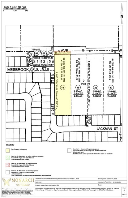 Vacant lot in East Lancaster neighborhood! Surrounded by single family homes and businesses. Public transportation and easy access to utilities available. Land is located across from the E Ave I & 20th St E bus stop, and bordered by E Ivesbrook St, 21st St E and Jackman Street. Frontage is on city street E Avenue I. Single family homes within .5 miles of this lot sold for an average of $485,000 or $245/sf. You can get this land for $2.70/sf. Rectangular lot size is 107,729sf (2.47 acres). Zoning LRD21* Residential - Vacant Land. APN: 3150-023-044