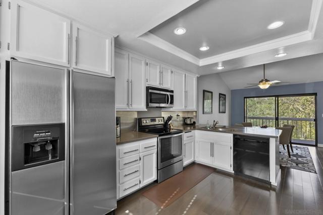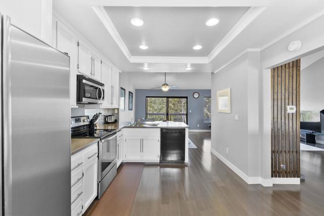 This newly remodeled townhome is located at the end of a cul-de-sac with canyon views. Engineered wood flooring throughout the unit, the large primary suite with custom-built floating vanities, European-style bathtub/shower and a large walk-in closet, overall design schemes are modern and natural. The townhome is in a resort-style, gated community with 24/7 gate attendants, amenities that include a clubhouse, two pools, a hot tub, two gyms, a racquetball court, six tennis & four pickleball courts, a soccer field, a pond, a playground, and a BBQ area to host family and friends. Short distance to schools, beach and restaurants.