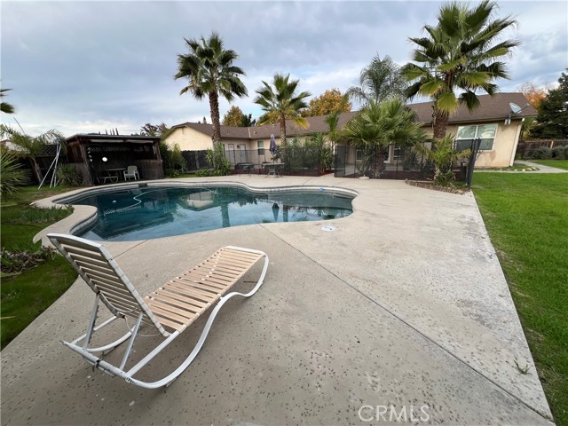 Move in ready to a new homeowner to this beautiful custom built home on a quiet low traffic, sits on an acre in a cup-de-sac. Enter thru a beautiful front door into the great room, new carpets, jetted tub in master bathroom open kitchen with cherry cabinets, features include kitchen island, stainless steel appliances, tile flooring, granites counters, 5 burners steel stove, full back splash, 7 ceiling fans, whole house fan, 2 attic fans. Extra large space 3 car garage and can park more than 3 cars. In the backyard, enjoy the covered patio with built-in barbecue. Splash into a swimming pool this coming summer time with your family and friends. There are some fruit plant trees in the backyard that you can enjoy during harvest season.