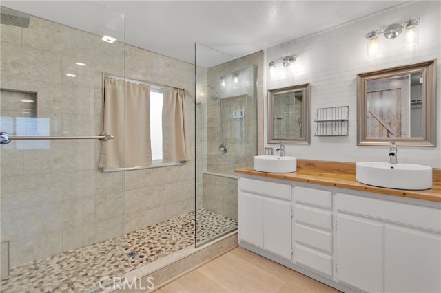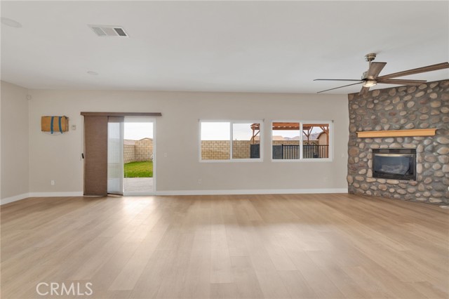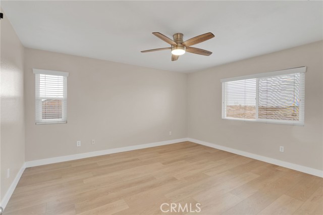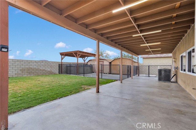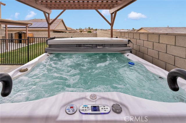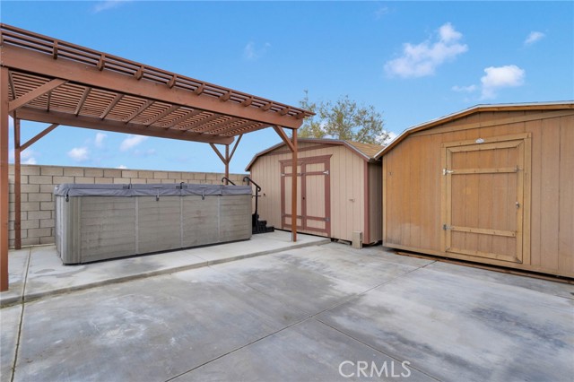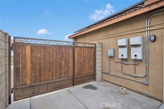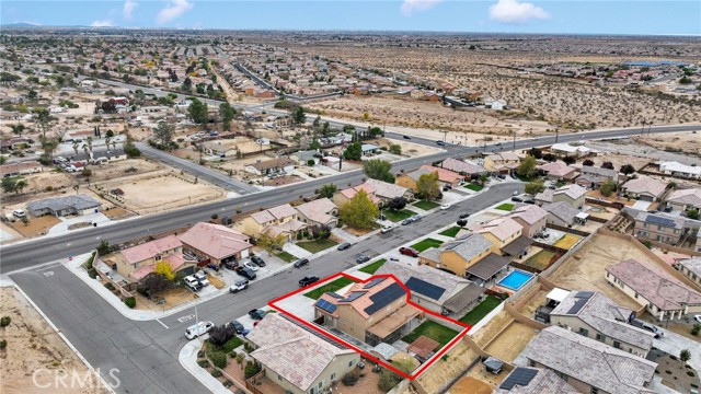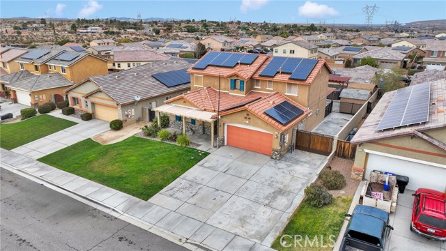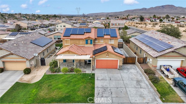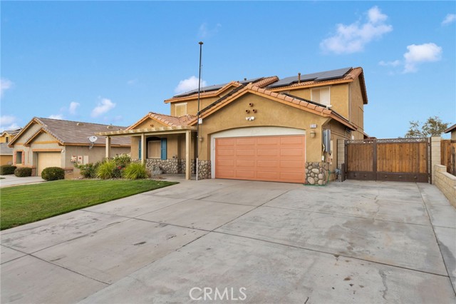 MOVE IN READY! NO HOA! Beautiful open concept home featuring six bedrooms and four bathrooms, including two main floor bedrooms ideal for guests or multigenerational living. The upgraded kitchen showcases abundant storage, quartz countertops, stainless steel appliances, a 36 inch six burner stove with range, in counter microwave, two pantries, pot and pan pull out drawers, and soft close cabinets and drawers throughout. Remodeled bathrooms and the primary suite offers a spacious retreat with a large bedroom, an oversized walk in closet, and a beautifully upgraded primary bathroom that includes a very large walk in shower featuring two showerheads, one of which includes a multi function shower panel system. The home features recessed lighting, new luxury vinyl flooring throughout, new energy efficient windows installed throughout the entire house along with solar window shades. Additional upgrades include a tankless water heater and a swamp cooler. The exterior includes a gated swim spa, fully landscaped front and backyard, two large storage sheds, a new block wall surround, and RV parking with a dump hook up. The property comes with solar and battery backup, with solar agreements to be assumed by the buyer. Conveniently located near the 15 Freeway, shopping, dining, and a community park, this home blends comfort, efficiency, and modern upgrades in a prime location.