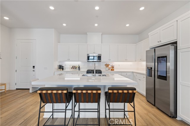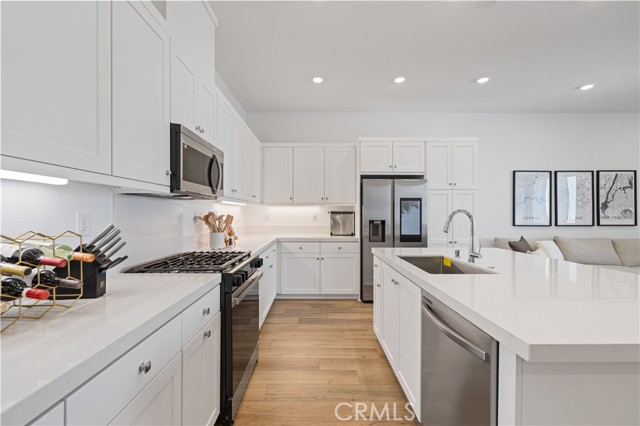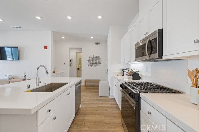 WONDERFUL TOP Floor ONE Bedroom with Valley Views!! Located in the Five Point Community of ELEMENT! Absolutely beautiful finishes on this 1+1 with High Ceilings, Creamy White Walls, & Luxury Plank Vinyl Flooring. Charming Formal Entry with Built-Ins leads to the Great Room. The Expansive Center Island with a Breakfast Bar anchors the White Kitchen which boasts Marble-like Quartz Counter Tops, Stainless Steel Appliances, & Abundant Cabinetry adjacent to the Large Living Room with Views and a French Door that leads to the Balcony Space. There is a Spacious Bedroom with a Gigantic Walk-In Closet, Plush Carpeting and more Views! A Laundry Closet with Stackable Washer & Dryer is included. There is an Extraordinary Private Storage ROOM across the hallway that belongs to this unit! An Attached Single-Car Garage with Electric Vehicle Charging on the first floor that leads to the stairway to the front door. This home includes all the amenities of Five Point's including Pool, Spa, Recreation Center, Sports Courts, Trails, and MORE! Terrific location for commuters. Near to Plentiful Amenities including dining, shopping, & fitness facilities.