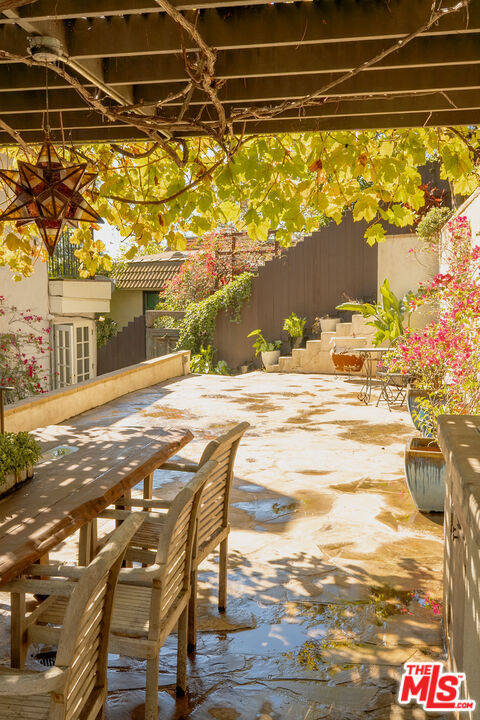 Tucked just above Beachwood Village and right below the Hollywood Sign, this 1920s Hollywoodland home is full of character and charm. When you walk in, the space feels warm and inviting. Natural light pours across the hardwood floors and into a cozy sunken living room. Through the French doors, you'll find a terrace covered in grapevines, perfect for dinners outside or catching up with friends on soft LA evenings. Out back, loquat and lemon trees wait to be picked for your next meal. The kitchen, with its vintage green tile and stainless appliances, flows right into the formal dining area. A light-filled family room with a built-in bar makes a great spot for movie nights or casual get-togethers. Upstairs, the primary suite opens to a private deck, the perfect place to unwind and take in the hillside view. In total, there are three bedrooms, four baths, plus a flexible attached room that works well as an office or nursery. And just below, there's a charming (furnished or unfurnished) one-bedroom studio with its own separate entrance, ideal for guests or a creative workspace. Out back, a beautiful Moroccan door opens to a hidden stairway that winds up into the hills.People love this neighborhood for its creative, close-knit vibe with local cafes, hidden stairways, and hiking trails just steps from your door. Neighborhood Favorites: Beachwood Cafe - a cozy local landmark perfect for Sunday brunch.Beachwood Market - an old-school neighborhood grocer.Hiking trails leading directly to Griffith Park and the Hollywood Sign. Nearby Franklin Village with theater, restaurants, and nightlife. Prime Location: Easy access to the 101 freeway, studios, and the Valley. Quick drive to West Hollywood, Los Feliz, and Silver Lake. Ideal for those wanting the balance of privacy, architecture, and central LA living. The neighborhood features its own market, cafe, private mailbox rental, florist and stables.
