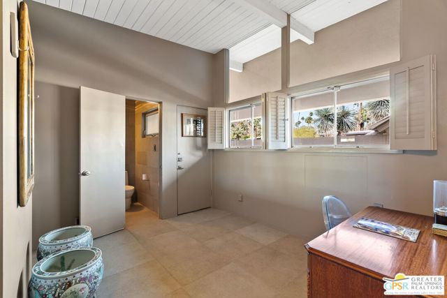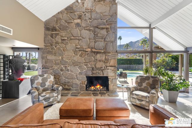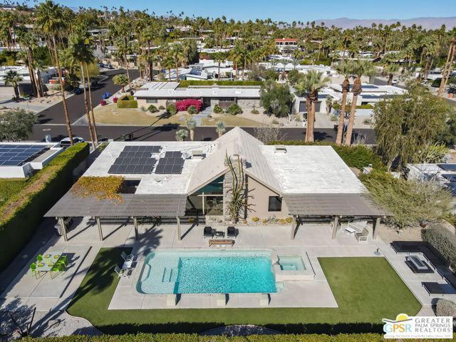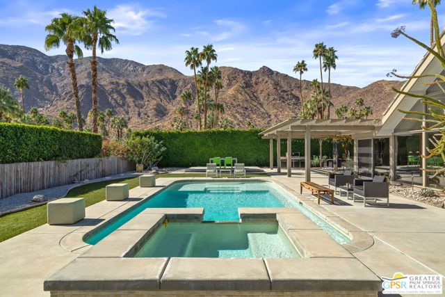 Distinctive & rarely available Charles Dubois Swiss Miss (also referred to as an "Aloha House"). Only fifteen of these iconic Mid-Century gems were constructed by the Alexander Construction Company. Pride of ownership is evident -same owner since 1997 who has lovingly cared for this incredibly fantastic and architecturally significant home. Special features include soaring tongue and groove ceilings, walls of glass, an incredible floor to ceiling rock fireplace, a large gourmet kitchen sure to please culinary enthusiasts, three fully renovated baths, some double paned windows and abundant storage. The amazing & oversized rear yard offers breathtaking Mt. San Jacinto views, a resort quality pool and spa and stunning mature landscaping, numerous outdoor entertainment venues and potential to add a guest house with significant yard space remaining. Great lighting fixtures, a serene color palette, attached covered parking with direct access into the kitchen, custom window coverings and an updated electrical service panel. Vista Las Palmas is considered one of the finest neighborhoods in all of Palm Springs. Walk to downtown Palm Springs and enjoy fine & casual eateries, coffee houses and retail shopping. Owned solar too! Incredibly well priced, polished and ready to move in-unpack and enjoy!