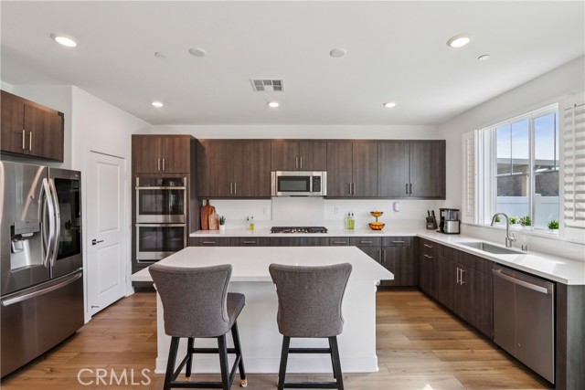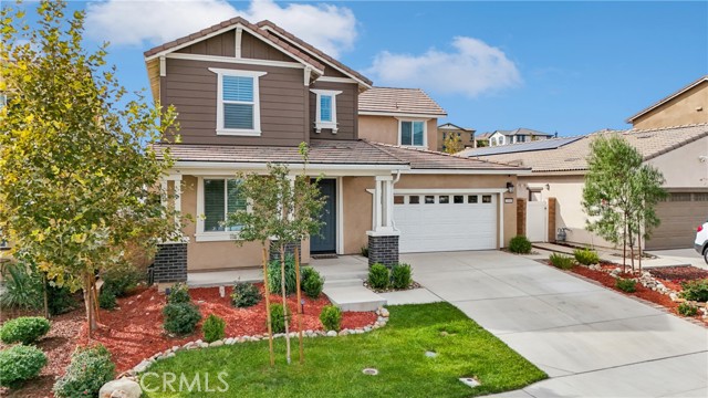 Welcome to 2464 Yellowstone Way, an upgraded and beautifully maintained home located in the highly sought-after River Ranch community. This spacious residence offers 4 bedrooms, 3 bathrooms, and a versatile loft, providing plenty of room for comfortable living. As you step inside, you're greeted by soaring ceilings, luxury vinyl plank flooring, and recessed lighting that creates a warm and modern ambiance. Large double-pane windows fill the home with natural light, all accented by elegant plantation shutters for a clean, upscale finish. The heart of the home is the open-concept great room, where the kitchen, dining area, and family room flow seamlessly together—perfect for entertaining. The kitchen is a true showpiece, featuring modern cabinetry with abundant storage, expansive quartz countertops, a spacious island, and stainless steel appliances including a double oven, cooktop, microwave, and dishwasher. Large sliding doors open to the backyard, blending the indoor and outdoor spaces beautifully. Downstairs, you’ll find a private bedroom—ideal for guests or multi-generational living—complete with plush carpet, plantation shutters, and a generous closet. The hall bathroom offers a walk-in shower with bench seating and a sleek, modern vanity. The laundry room provides additional convenience with built-in cabinetry and shelving. Upstairs, a spacious loft awaits—perfect as a media room, home office, workout space, or play area—with picture-perfect mountain views. The primary suite is a true retreat, offering abundant natural light, plantation shutters, and two separate walk-in closets. The primary bathroom includes dual sinks with quartz countertops, a walk-in shower with bench, and luxury flooring. Two additional bedrooms and another full bathroom complete the second floor. The fully landscaped backyard offers plenty of room to relax and enjoy, complete with two storage sheds, block wall, and vinyl fencing. Additional highlights include a two-car garage, large driveway, and a fully paid-off solar system—a valuable bonus for energy efficiency and long-term savings. River Ranch is loved for its resort-style amenities, including a tot lot, dog park, clubhouse, pool, spa, pickleball court, basketball court, playground, BBQ area, picnic area, and Frisbee golf. It’s truly a community designed for comfort, connection, and recreation. Come experience the charm, space, and lifestyle this beautiful home has to offer!