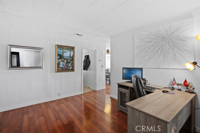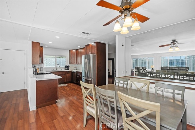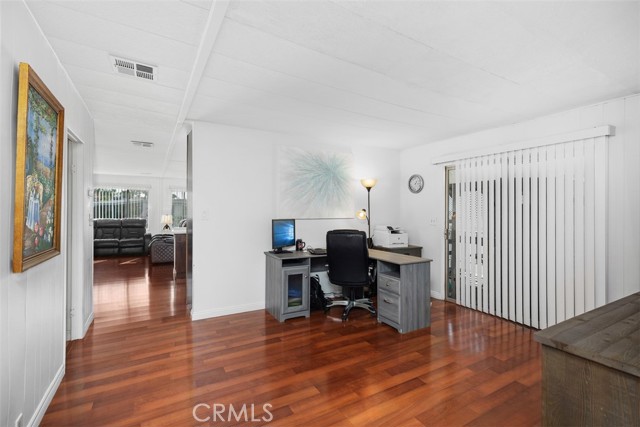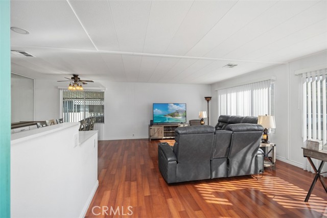 Wonderful Retirement Living in Beautiful San Juan Capistrano! Located in a highly sought-after rent-controlled, gated 55+ community, this well-maintained home offers 2 spacious bedrooms, 2 baths, a light-filled living room, a separate dining room, and a versatile bonus den with sliding glass doors that open to a large, shaded veranda with low-maintenance landscaping—perfect for relaxing and enjoying the coastal breezes. The beautifully remodeled kitchen features stunning cabinetry, stainless steel appliances, including a gas range with convection oven and air fryer, quartz countertops, and an open layout that enhances the home's flow. Thoughtful improvements include wood-look laminate flooring (2016–2017), garbage disposal, water heater, dishwasher, new gas lines to the kitchen, and reinforced pier jacks/foundation. Additional upgrades include full interior and exterior paint (2019), electrical meter box, new bedroom carpet (2019), a new roof and skylights (2020), New Furnace (2022), Kitchen remodel (2023). Inside laundry room with washer and dryer included. Bathrooms and laundry room offer a great opportunity for future updating to your taste. Residents enjoy fantastic community amenities such as a clubhouse, pool, spa, and shuffleboard. Home is sold AS-IS and is a must see!