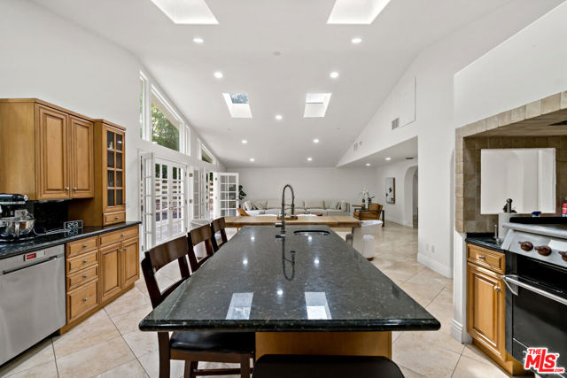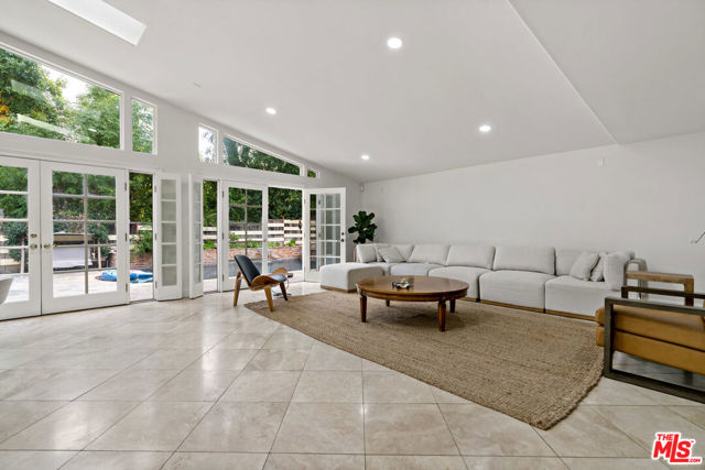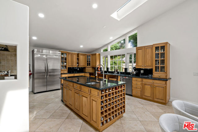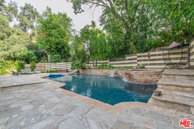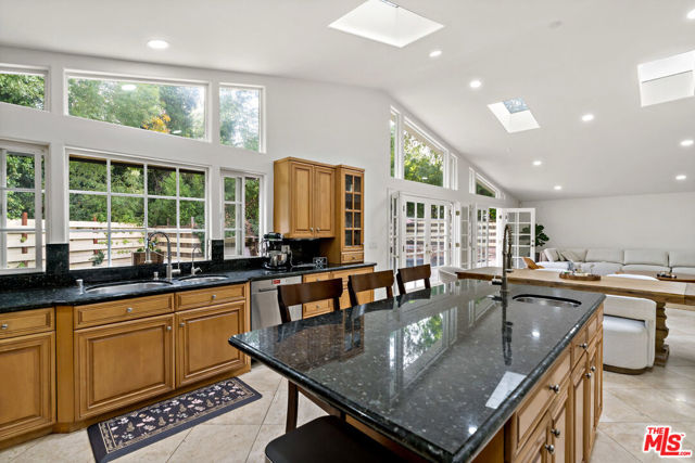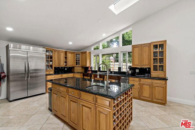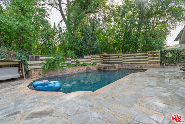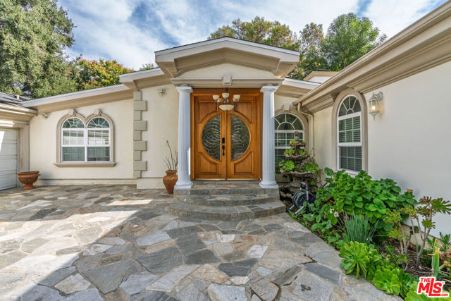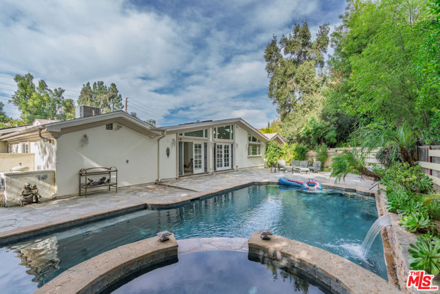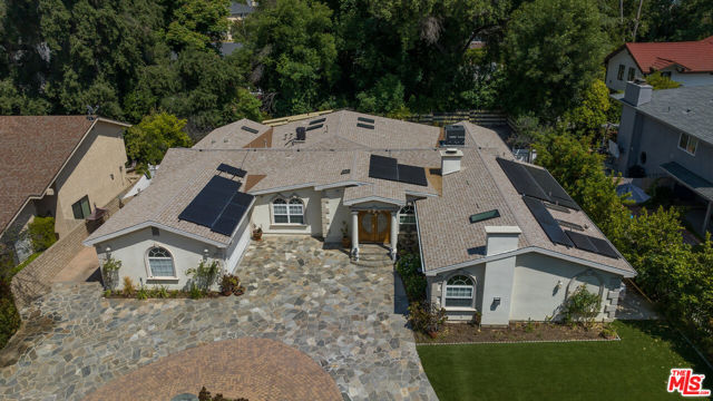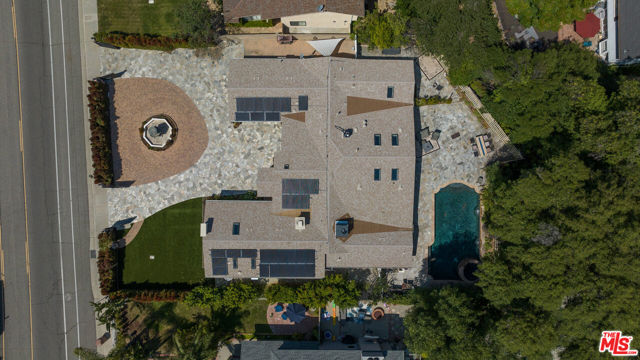 Beautiful single-story pool home in one of Calabasas' most desirable neighborhoods within the Las Virgenes Unified School District. The main house offers 3,976 sq ft of living space with 4 spacious bedrooms and 3.5 baths, featuring travertine flooring, vaulted ceilings, and a chef's kitchen with granite countertops, a 60" Wolf dual-oven range, and built-in refrigerator. Recent upgrades include 34 fully paid-off solar panels and a new roof (2022). A separate ADU/guest house with its own address, parking, EV charger, kitchen, and laundry provides excellent flexibility for guests or rental income. The property sits on a 13,000+ sq ft lot with a circular driveway, multiple EV chargers, lush green space, fruit trees, and an entertainer's backyard complete with a sparkling pool/spa, fire pit, and seating area. Close to top-rated schools, freeway access, shopping, and dining.