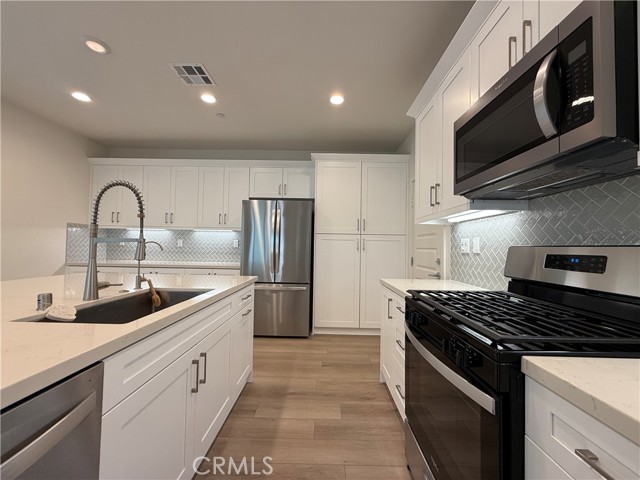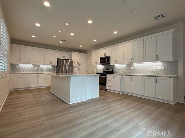 Location! Location! A two-story home located at the end of a quiet cul-de-sac in the desirable Ontario Ranch community. Built in 2024, this 4-bedroom, 3.5-bathroom home spans 2,528 square feet. The main floor features a bedroom with an en-suite bath, perfect for guests or multi-generational living. The spacious living room opens to the kitchen and dining area. The kitchen white cabinetry, stainless steel appliances, and subway tile backsplash. The backyard features a low-maintenance paver patio, ideal for outdoor dining or relaxing. Upstairs, a large loft provides flexible space for a second living area, home office, or playroom. The primary suite includes a walk-in closet, dual vanity, soaking tub, and walk-in shower. Conveniently located near Costco, 99 Ranch Market, with easy access to the 15 and 60 freeways. Located within the Chaffey Joint Union High School District.