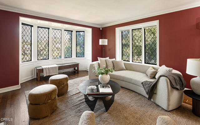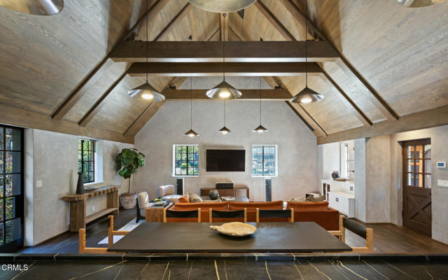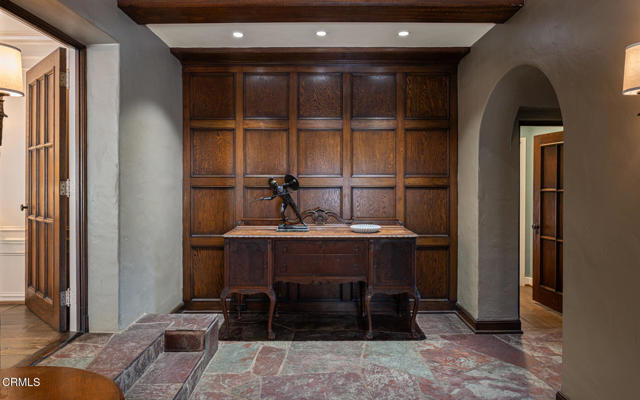 //Walter H Seavey House by David A Ogilvie AIA, 1927//This fully renovated English Revival home was originally built for the family of investment banker Walter H Seavey & their three live-in employees. Designed by David A Ogilvie, who spent 5 years as an apprentice for Reginald Johnson before establishing his own office, & built by legendary Master Builder Peter Hall, the property was featured in the Jan 1928th ed. of Architectural Digest. Located in the prestigious Estates area in the hills of San Marino, the property was constructed in an era known for unmatched craftsmanship & 'old word' sourced materials, much of which are still exhibited today. Original: leaded glass windows w/pull-down screens, butler's pantry & 692sf lower-level prohibition bar were maintained. Complementing these elements, the house was renovated to allow for luxurious, modern living & flow. In addition to systems, BD's & BA's, the star of this endeavor is the impressive 25'x30' Great Room with 20' ceilings & destressed, antique French oak flooring. Now the heart of the house, the incorporated kitchen w/large island & Subzero & Wolf appliances flows seamlessly into informal dining, work desk & seating/TV area w/surround sound.//With the vision of a master architect, Ogilvie sited the living space to allow for public & private outdoor areas. From front circular driveway, the public front courtyard welcomes w/brick walkway leading to front door. Adjacent, a more casual seating area is harmonized w/the sound of running water from contemporary raised rectangular Koi Pond. For more private affairs, behind postern door, is the family courtyard & garden. Newly added outdoor kitchen w/BBQ, sink, & smoker services both bar & table seating in a European setting, surrounded by irrigated planters & overhead bistro lights. Perhaps the most striking element can be found in the wooded rear yard. The sound of flowing water emanates from upper waterfall that bends & flows 250' through trees & landscaping. Trails w/foot bridges intersect stream & terminate at pond at NE side of property. Whether used for daily exercise, contemplation or entertaining, it is truly a rare feature to still exist in a private setting. //FEATURES:4BR/3BA upper, 1BR Ste entry, 1BR Ste w/AC above garage, main & prep kitchens, butler's pantry, CAT 5, EV charging, workshop, underground downspouts. //Renovation: 400 amp electrical, copper plumbing w/instant H2O heaters, 3 HE HVAC, Lynx BBQ, smoker, fridge, steam shower.