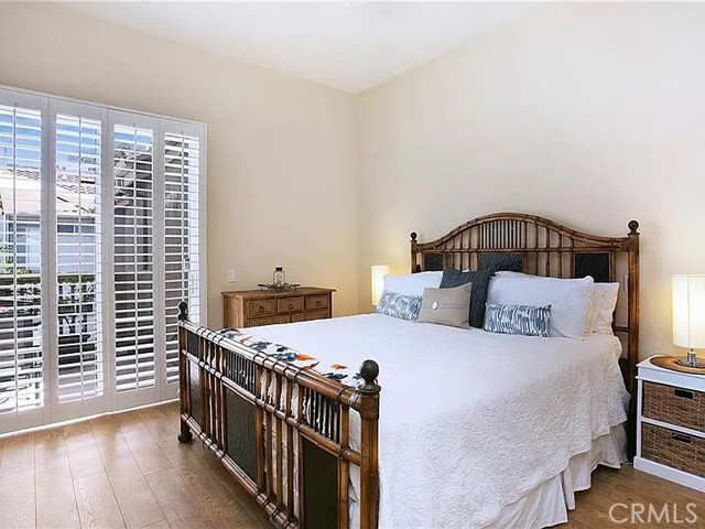 Available NOW! Welcome to this exceptional carriage unit in the highly desirable community of Palm Court in Laguna Niguel. Enjoy refreshing ocean breezes, peaceful tree-lined views, and a quiet location near the back of the neighborhood—with no one above or below you. Enter through the charming ground-level courtyard with lush landscaping and head inside to the first level, where you’ll find access to the attached one-car garage with built-in storage and epoxy flooring. From there, an interior staircase leads you up to the bright and open main living area, all on one level. Upstairs, the home features vaulted ceilings, abundant natural light, plantation shutters, newer ceiling fans, and beautiful distressed wood flooring throughout. The spacious living room offers a cozy fireplace with a glass-tile façade and opens to one of two private decks, perfect for enjoying morning coffee or coastal breezes. The remodeled kitchen boasts Quartz countertops, a glass tile backsplash, upgraded cabinetry with custom lighting and pull-out drawers, stainless steel appliances, and a breakfast bar that flows seamlessly into the dining space. A newer refrigerator is also included. The floor plan offers two generous bedrooms and two full bathrooms, each updated with Quartz counters, modern light fixtures, and tile flooring. The primary suite features its own private deck, and the convenient upstairs laundry includes a washer and dryer. Residents of Palm Court enjoy resort-style amenities including a sparkling pool, spa, tennis courts, and a tot lot, just steps from the front door. The community is ideally situated next to Chapparosa Park and only minutes from Dana Point Harbor, world-class beaches, trails, restaurants, and shopping.