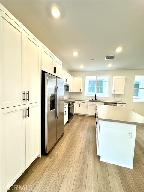 Beautiful Brand New 3-story single-family townhome in Eastvale. Featuring 4 bedrooms, 3.5 baths, and 1,780 sqft of modern living space. Designed for comfort, style, and energy efficiency, this home includes a solar panel system with backup battery to help reduce electricity costs, with the multi-zone AC system, allowing individual temperature control on each floor. Open-concept 2nd floor with modern kitchen, quartz countertops, premium appliances, and spacious living area that opens to a private covered deck. Flexible 1st-floor bedroom ideal for home office , gym or guest suite. Primary suite with dual vanities and enclosed shower; second bath with soaking tub. Includes brand new washer, dryer, and refrigerator. Community offers pools, BBQ areas, and playgrounds. Attached 2-car garage plus street parking. It located nearby parks, shopping center and top-rated schools. Must see ! Don’t miss this opportunity!