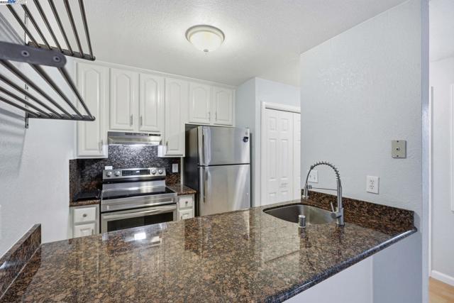 Beautiful first floor, bottom level unit in a quiet and well maintained community. This 1 bed 1 bath home features laminate flooring throughout and rare in-unit washer and dryer. Enjoy two private balconies-one in the front and one in the back perfect for fresh air, plants or relaxing outdoors. The unit includes a detached garage for parking and additional storage. Prime location close to major freeways, BART, and public transportation, making commuting a breeze.