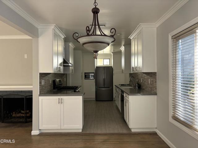 Introducing a charming and updated 3 bedroom, 2 bathroom home in the desirable La Crescenta area. This lovely home features a cozy fireplace, a modern kitchen with stainless steel appliances including a refrigerator, dishwasher, and microwave. The wood floors throughout add warmth and character to the space, while the abundance of natural light creates a bright and airy atmosphere. Step outside to enjoy the outdoor entertaining space complete with a built-in BBQ, outdoor fridge, and a covered patio with fans for those warm summer days. Located in a top-rated school district, this home is perfect for those looking for a comfortable and inviting living space in a sought-after neighborhood. Decorative fountains add charm and tranquility to the home. Don't miss out on this opportunity to make this house your home!