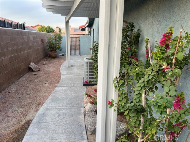 Beautiful home, concrete roof, large covered vinyl patio, large kitchen with granite counter tops and many cabinets. Fireplace in the living room. Master bedroom suite, plantation shutters and fans. Separate studio unit attached, side entrance, full bath, kitchen and closets (not permitted). Great rental and income opportunity. Newer AC system. Entertainers backyard, huge extra large vinyl patio. Close to all services, shopping, date festival, Coachella Fest. Property to be sold "a s is" buyer to verify all permits etc.. Another great opportunity!