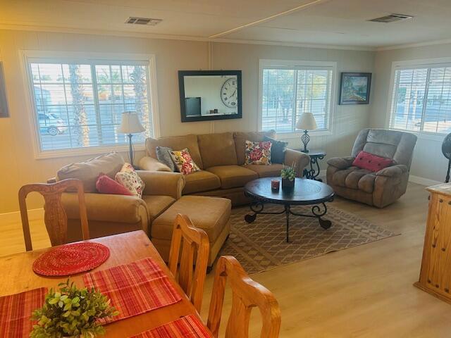 Own the LAND in this 55-plus community! Updated and spacious home with new kitchen and plank vinyl flooring throughout most of the property. New dishwasher and stove/oven. This home is move-in ready and shows pride of ownership throughout. Homes in Tri-Palms Estates are centered around a club house with pool and spa, one 18 and one 9 hole golf course, tennis and pickle courts, a cafe and more. The community is centrally located at the edge of Rancho Mirage and Palm Desert, and just a few minutes to Palm Springs. Truly one of the best values in the area.
