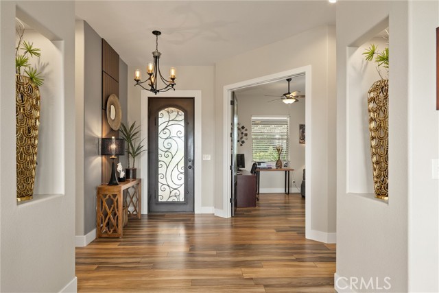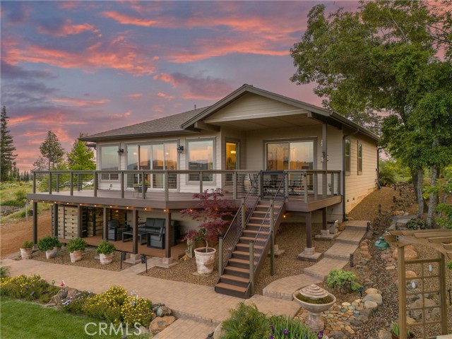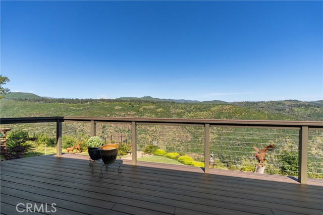 For the discerning buyer seeking something exceptional, here is a rare gem boasting an unparalleled view. Crafted to maximize the breathtaking vistas and sounds of the Feather River canyon, complete with its cascading river view and connection to Lake Oroville, this residence offers a singular experience. Upon arrival, you're greeted by front landscaping in which every aspect is meticulously curated to maintain a harmonious theme. The landscaped lawns benefit from an underground watering system ensuring complete coverage. Inside the open living space you'll enjoy a floor to ceiling fireplace complimenting the floor to ceiling view. The spacious kitchen features a sizable island with stone counters, shaker cabinets, subway tile backsplash, and a large pantry. The expansive 8x12 sliding glass door integrates indoor and outdoor living, leading to a large deck framing the panoramic views. With 1,785 square feet of living space, this home is currently set up as a 2 bedroom plus office, but could easily be used as a 3 bedroom residence. The property also has an insulated 3-car garage with extra-deep bay and 220v wiring for a backup generator, additional side parking, and Owned Solar. Situated in a prime location, this home directly overlooks the West Branch of the Feather River, offering a tranquil ambiance year-round. The composite decks ensure lasting beauty, with multiple outdoor spaces, including a shaded lounge under the main deck, an outdoor shower with ambient solar lighting, a sitting area beneath a pergola, and an observation deck over the canyon. Indoors, luxury vinyl plank flooring with soft underlayment provides comfort & style throughout. The en suite bedroom boasts canyon views, deck access, and a bathroom adorned with a large walk in shower, complete with a dual sink vanity and an extra-deep, fully organized walk-in closet. Abundant storage options further enhance the home's functionality, while the oiled bronze front door with inset ironwork and rain glass panel adds to its curb appeal. Recent updates include new, high quality interior and exterior paint throughout. For those considering rental or vacation opportunities, the property presents potential as a VRBO or second home, especially if purchased furnished. With landscape lighting illuminating the grounds, picture-perfect evenings outdoors are guaranteed. From the meticulously designed interior to the captivating outdoor spaces, this home offers a truly enchanting living experience.