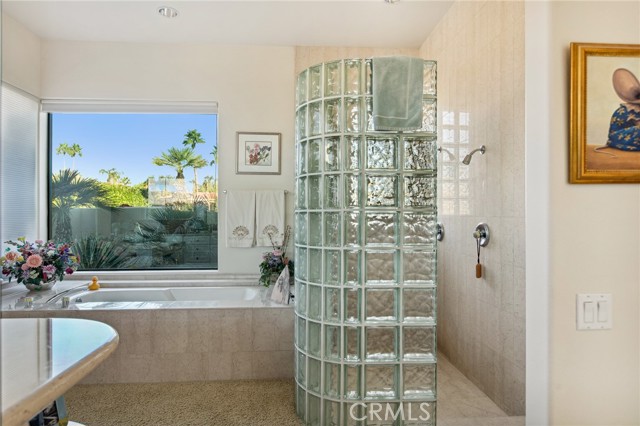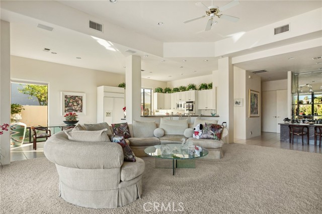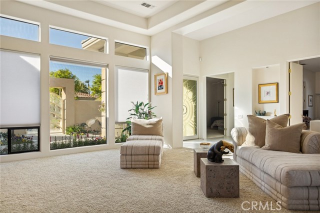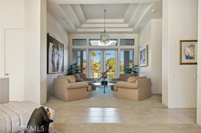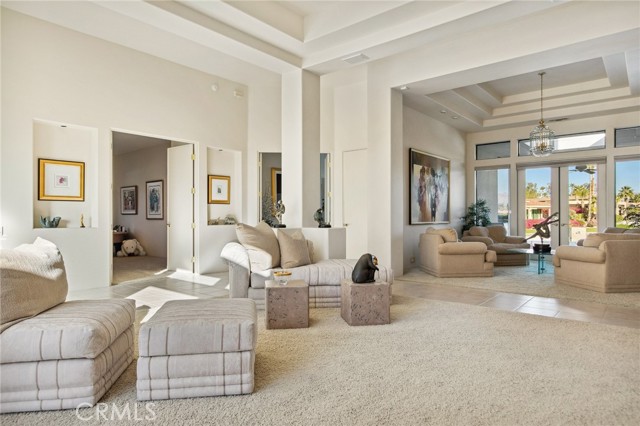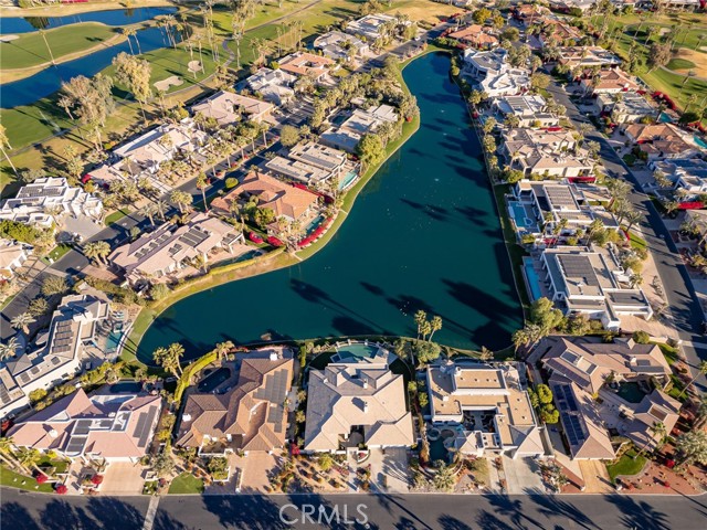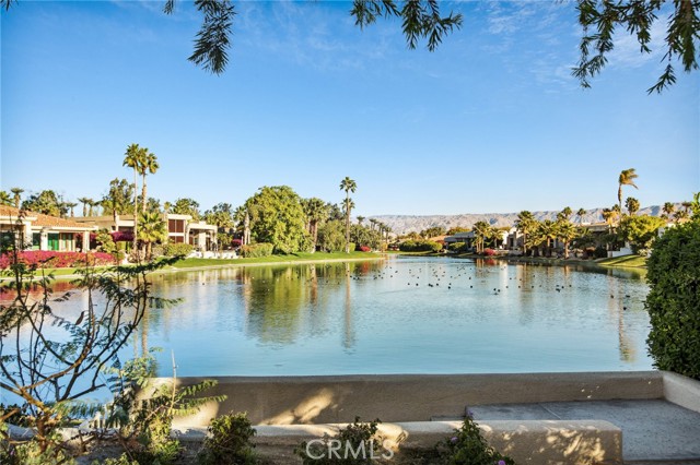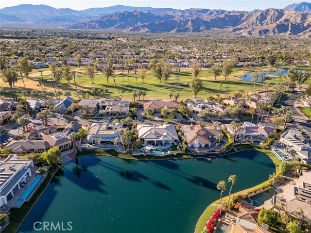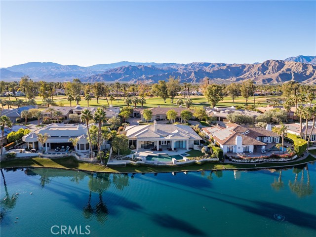 Custom Contemporary with a Rare Lakeside Setting in Rancho Mirage, offering Expansive Lake and Mountain Views and Grand Indoor and Outdoor Entertaining Spaces across 3,432 Square Feet on .35 Acres. Great Room with Soaring Ceilings, Walls of Glass, a Floor-to-Ceiling Fireplace, and a Casual Dining Area, all with views of the lake. Gourmet Kitchen with Top-Tier Appliances and a Social Island offering Counter Seating, open to an adjacent Media Room. The Kitchen and Media Room open to the Lakeside Terrace, allowing seamless indoor/outdoor living. The Primary Suite includes a Large Bedroom with high ceilings and walls of glass, a Retreat Area, and a Spa Bath with Double Vanities, a Soaking Tub, and generous Walk-In Closets. Two Guest Bedrooms each feature an Ensuite Bath and a Private Patio. You are greeted at the private front entry courtyard by custom double art-deco glass gates leading to an elegant art-inspired water feature. Matching custom art-deco inspired double fronts open into this rare custom lake view property. Outside the back of the estate you will find Covered Outdoor Living and Dining Areas, an Expansive Lakeside Terrace with a Stunning Infinity-Edge Pool and adjacent Spa that seemingly blend into the lake, all with panoramic lake and mountain views. Multiple Updated Air Conditioning Units, New Water Heater, Exceptional Mechanical Maintenance, Energy-efficient variable-speed pool pump and Spacious 3 Car Garage with an included luxury Golf Cart– it's all here. Come home to your own Private Desert Lakeside Retreat!