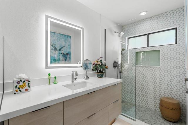 Dazzling wrap-around mountain views highlight this spectacular property on the 12th fairway of the renowned Mountain Course, adjacent to the La Quinta Resort! This coveted end location features a large patio expansion, the better to accommodate the guests you'll welcome to this home! Highly customized by a world-class polo player and world traveler, the decor offers a sleek, contemporary background to highlight the natural vistas outside! Recently restyled with elegant finishes, barn doors, and a neutral palette, the decor evokes the sense of an exotic resort. A wall of windows celebrates the amazing light in the great room and the open kitchen area. Viking appliances will invite the most creative chef to this bright space featuring butcher-block counters, a breakfast nook, and glass-fronted cabinets. Hand-selected finishes enhance the bedrooms and casita, all of which offer en suite baths. The powder room is an opulent, old-world retreat adorned with crystal lighting. The primary bath has been remodeled to include a large walk-in steam shower and custom cabinetry. The private front courtyard includes lush planting, built-in seating and a Moorish fountain. This unique getaway speaks to the casual elegance and fun-filled days for which the desert is famous. Are you that special person who will embrace the genius behind this creation? Come find your place in the sun!