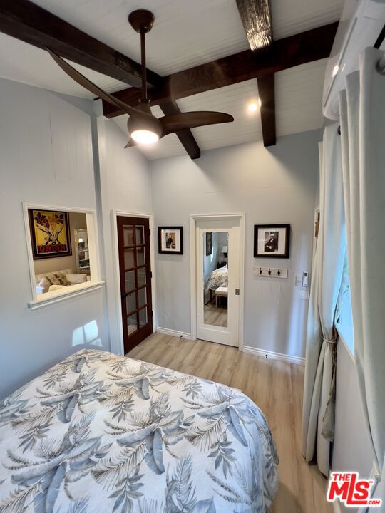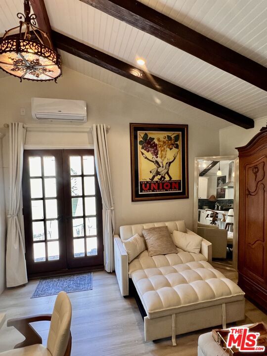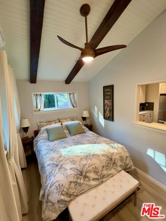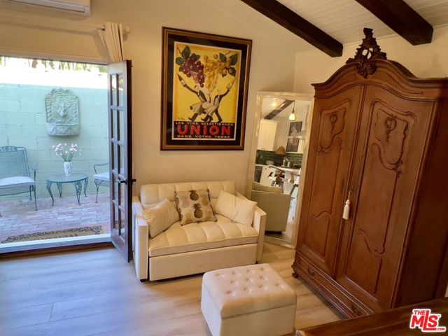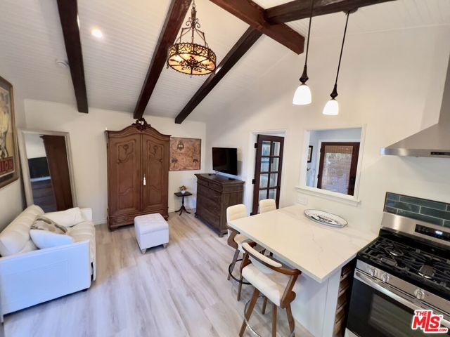 Welcome to this newly crafted ADU bungalow - bright, airy, and full of character. High-pitched beamed ceilings and an open living area create a welcoming space, featuring a full kitchen and a generous peninsula counter space perfect for cooking, working, and dining. An antique wood armoire adds a touch of vintage elegance, and French wood doors open onto a cozy brick patio, ideal for relaxing outdoors. The bedroom boasts a distressed Koa ceiling fan and a pass-through window that enhances the sense of openness and airflow. The bathroom features Spanish blue and white patterned floor tiles and Mother of Pearl accents in the shower, with a bonus dual speaker/vent unit. This charming bungalow perfectly blends modern comforts and timeless appeal, making it a truly inviting retreat. An additional $150 per month covers utilities, including water, electricity, gas, trash, and internet. Available January 10, 2026.