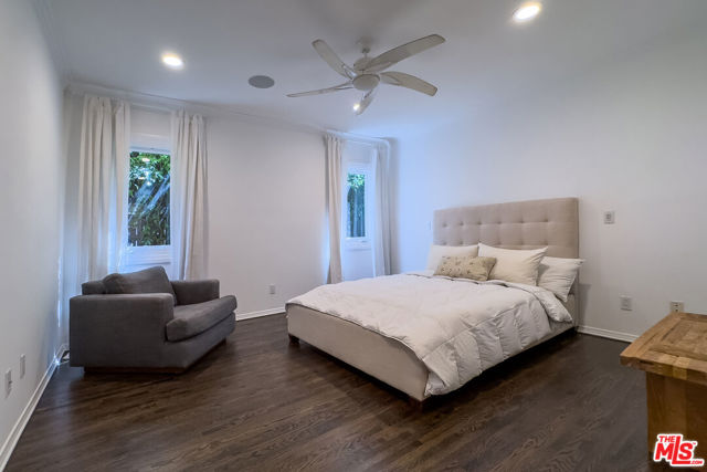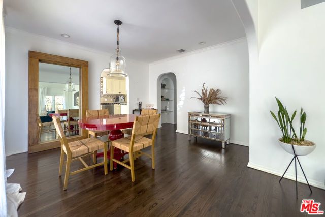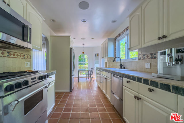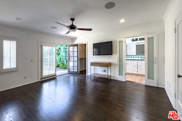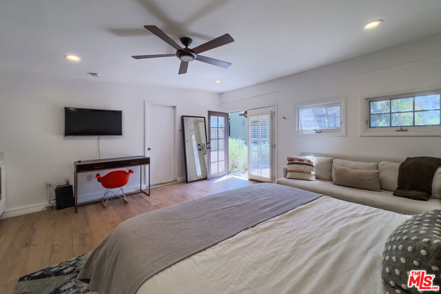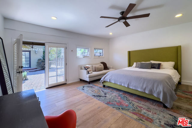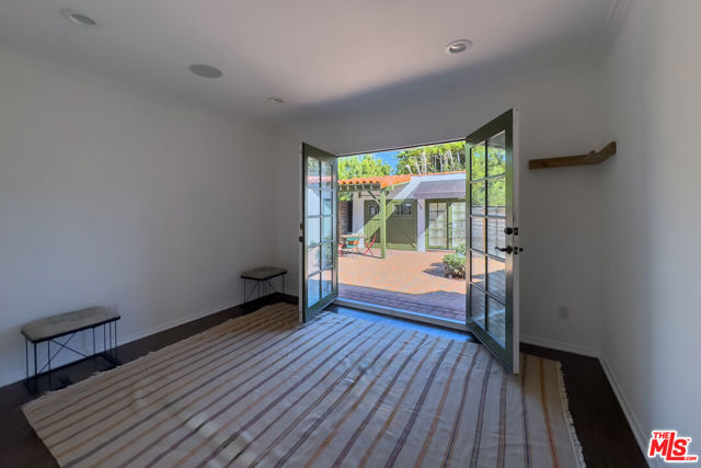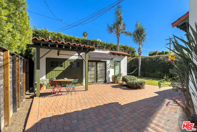 Private, hedged, and gated, this enchanting Spanish mini-compound is the lease everyone has been looking for! As soon as you enter through the charming courtyard, you feel like you're leaving the city behind. The romantic living room looks out to a fountain and features a fireplace, great windows and light, and a dining room overlooks the lushly landscaped courtyard. The kitchen has stainless steel appliances, an adorable eat-in breakfast nook with corner cabinets, and access to a laundry room. The main house offers three bedrooms, all nicely scaled. The primary bedroom has two walk-in closets and a large bath and opens to a nice grassy backyard and veranda for al fresco dining. The garage has been converted to a studio with a kitchenette and bath. The house is also powered by solar, so there is a huge savings on electricity. Recent upgrades include new interior and exterior paint and newly stained wood floors and gates. A short distance away from restaurants, high-end boutiques on Melrose and Beverly Blvd, Erewhon, The Grove and Farmers Market, this is your perfect LA lease. Available now for a long term lease furnished or unfurnished.