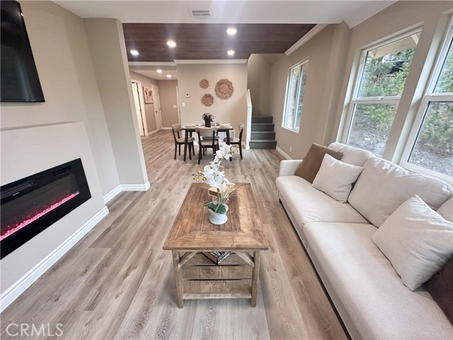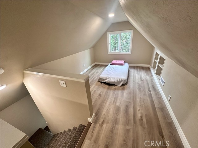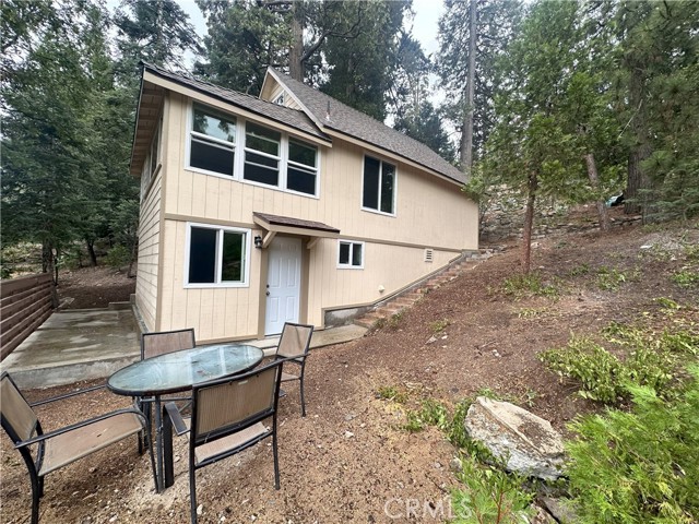 A turnkey mountain cabin on a spacious 12,348 sq ft private lot! Fully remodeled, this 3-bedroom, 2-bath home blends rustic charm with modern comfort. The main level features an open-concept kitchen, dining, and living area with quartz countertops, custom self-closing wood cabinets, and stainless-steel appliances. The private master suite sits on the lower level with its own updated bath, while the loft upstairs serves as a flexible third bedroom or cozy retreat. Located in a quiet neighborhood, the property offers beautiful mountain views, ample parking, and plenty of outdoor space. Just 4 miles from Lake Arrowhead Village.
