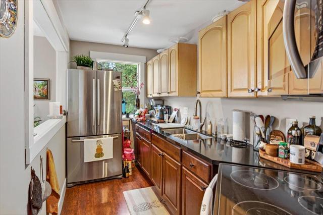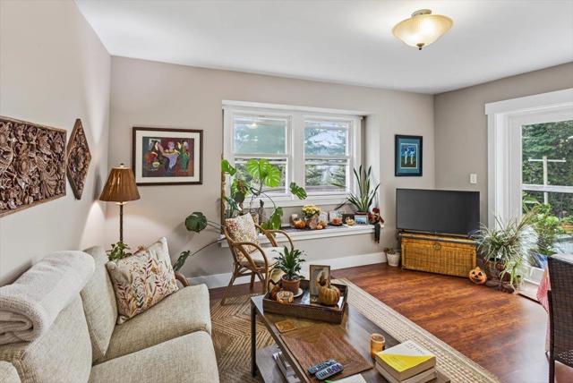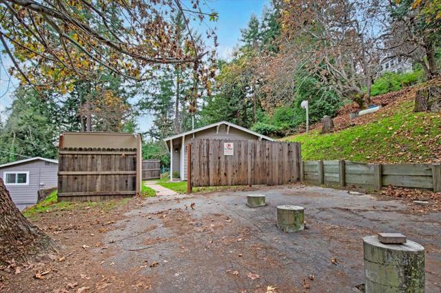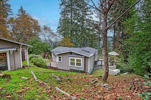 Discover a unique opportunity to own a charming residence in the heart of Redwood Estates. This versatile property, nestled on a spacious lot, offers flexibility and potential for various living arrangements. Main house features beautiful updates Inside, enjoy the warmth of a pellet stove in the inviting living area, complemented by dual pane windows and laminate flooring throughout. The kitchen is updated with range/oven refrigerator, tile flooring, recessed lighting, and a skylight. French doors lead to an inviting patio with mountain views and a wraparound balcony, offering seamless indoor-outdoor living. The lower unit adds additional space with its tile flooring, dual sliding closets, and exposed wood beams. It also includes a full bath with a stall shower and a kitchen equipped with a granite counter and freestanding oven range. Additional converted garage has 1 bedroom/1 bathroom with shower plus office,kitchen and living space. Amenities include guest parking, garden areas, a Generac generator, public water, comcast internet. Friendly community features, pool, parks, community center, new fire station, village store, cafe and post office. 10 min to town and best Los Gatos Schools: Lexington, Fisher and LG High