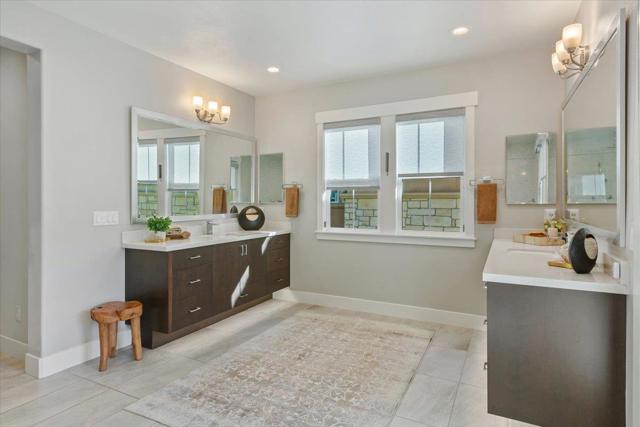 Discover the perfect blend of luxury, innovation, and comfort in this upgraded turnkey home located in Gale Ranch's coveted Carmela neighborhood. Showcasing panoramic views of Mt. Diablo and access to top-rated schools, this residence redefines modern California living with over $900,000 in designer upgrades. Elegant high ceilings, custom finishes, and a seamless open layout create a sense of timeless sophistication from the moment you step inside. The gourmet chefs kitchen is a statement of artistry and function, featuring Quartzite countertops, Sub-Zero appliances, and a Wolf range, flowing effortlessly into the great room with a sleek linear fireplace and 90-degree panoramic doors that extend to a covered loggia-complete with outdoor kitchen, BBQ, and space heaters ideal for year-round entertaining. A main-level ensuite bedroom offers flexibility for guests, multi-generational living, or a private home office. Upstairs, enjoy a versatile loft with stunning balcony views, three additional ensuite bedrooms, and a primary suite with a retreat and a spa-inspired bath that evokes pure serenity. Advanced smart home automation, CAT-6 networking, 7.1 surround sound, an LG OLED TV, owned solar panels, and a 3-car tandem garage with dual EV chargers complete this extraordinary residence