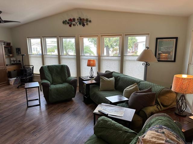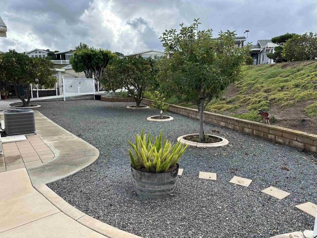Beautifully remodeled 2 bedroom, 2 bath home with a large driveway and a large backyard. Located in beautiful Pilgrim Creek Estates, a highly desirable 55+ gated community where you own the land! This lovely home has been extensively remodeled with a newly remodeled kitchen with shaker cabinets, stainless steel appliances and beautiful counters. Both bathrooms have been remodeled with a large shower in the master bath and a jacuzzi tub. Other upgrades include new interior doors and ceiling fans and dual pane windows throughout. Washer, dryer, refrigerator and most of the furniture is included including the 70” wall mounted tv in the living room. French doors lead to an enclosed porch that can be used as a craft room, office, man cave or extra bedroom. Plenty of parking with an extra long driveway with a two car garage leading to a beautiful backyard with a swing and sitting area and low maintenance yard with orange, apple and lime trees. Close to all shopping and dining and a short drive to beaches and harbor. Pilgrim Creek Estates is a beautifully landscaped community that offers many amenities including a clubhouse with a full kitchen, billiard tables, fitness center, heated pool, jacuzzi and free RV parking. Low HOA fees of $373 per month includes water, trash and sewer fees.