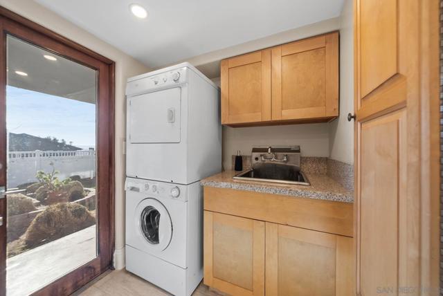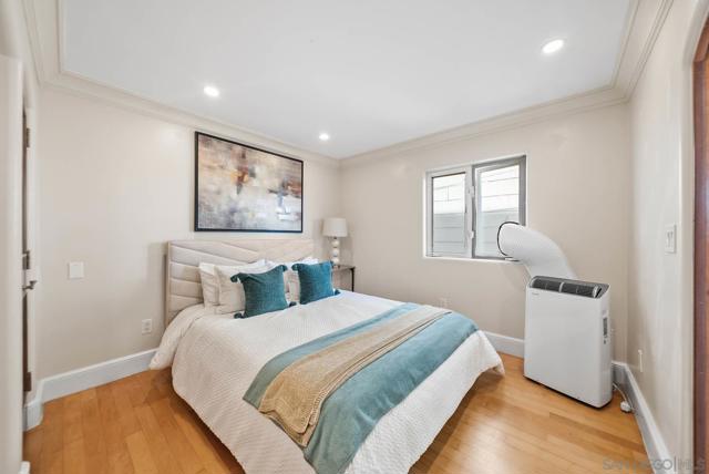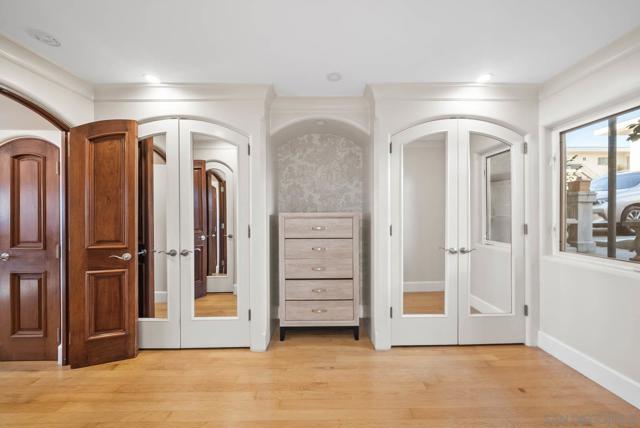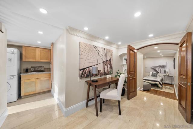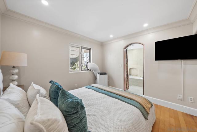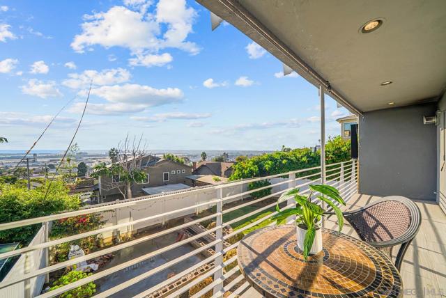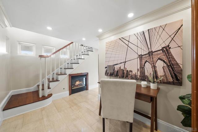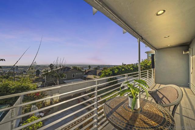 Experience sweeping views of the San Diego Bay from your kitchen, living room and balcony in this beautifully upgraded two-story condo in Mission Hills. The main level features an inviting living area with a fireplace and folding wood doors that open completely to the large balcony, creating seamless indoor-outdoor flow. The chef-inspired kitchen includes a Wolf range, pot filler, commercial-grade vent hood and ample counter space so that you can enjoy the views while cooking. The primary suite feels like a peaceful retreat, complete with an en-suite bathroom finished in travertine, a jetted soaking tub, and a separate walk-in shower. Downstairs, a versatile second bedroom offers comfort for guests, while an office nook, laundry area, and a second fireplace provide flexibility for work or relaxation. The community includes a shared grassy garden space surrounded by mature greenery, offering a quiet place to relax outdoors. Located just minutes from Little Italy, Old Town, downtown, the airport, and the 5 freeway, this home combines scenic hillside living with unbeatable convenience.