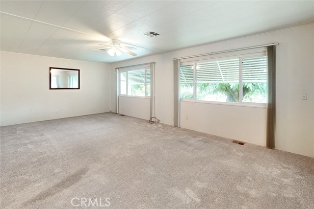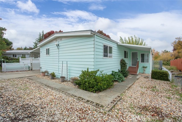 Get ready to fall in love with this exceptionally clean 2-bedroom, 2-bathroom manufactured home, securely set on a 433A foundation in the desirable Kelly Ridge area of Oroville! This home is ready for its next owner with big-ticket upgrades already handled! You'll stay comfortable year-round thanks to the HVAC system replaced in 2022 and the new water heater installed in 2023. Step inside and enjoy the fresh feeling of new living room carpet from 2023 paired with beautiful, new luxury vinyl plank flooring in the kitchen, hall, and laundry areas. Plus, peace of mind comes with knowing all the plumbing was replaced in 2011, and the home features double-pane windows throughout for energy efficiency. The foam roofing is approximately 11 years old. The kitchen is a chef's dream, boasting tons of storage, including a walk-in pantry, a gas range, double ovens, and all appliances, including the dishwasher and refrigerator, are ready to go. You'll also appreciate the separate indoor laundry room, complete with a washer, electric dryer, and extra storage space. The large living room is flooded with natural light, and the dining room features charming built-ins and a convenient pass-through window to the kitchen. The large primary bedroom offers abundant built-in storage and a generous closet, along with an ensuite bathroom featuring a walk-in shower. A second, well sized bedroom, sits off the kitchen. An added bonus is the sunny, enclosed sunroom off the living room, with double-pane windows—a perfect spot to relax! Outside, this clean property is fully fenced, and there is a spacious, covered, attached carport. This space is fantastic, offering two separate storage sheds and a handy little workshop with power! Best of all, the backyard provides a lovely view out to the former golf course, now enjoyed as the local frisbee golf course. Don't miss the chance to own this wonderful, turn-key property!