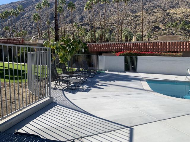 A RARE FIND! 3 beds, 2 baths - Vacant- Ready to move in. 1+year lease minimum, NOT a vacation rental. Nestled in the heart of the Historic Tennis Club, this captivating three-bedroom, two-bathroom and (3rd bedroom can also be a den with spectacular built out den with a hidden wet bar.) This condo is a haven for those seeking a sophisticated and convenient lifestyle. Situated in the prestigious Tennis Club Condos, this residence offers the perfect blend of tranquility and accessibility. The location desirable, being near the vibrant downtown area and surrounded by scenic hiking trails. As you step inside, you are greeted by the elegance of a single-level floor plan with high ceilings that create an airy and spacious atmosphere. The primary bedroom is nicely separated from the other bedrooms. Incredible mountain views and a lovely fireplace. One of the distinctive features of this complex is its exclusive private back entrance to Spencer's Restaurant, allowing residents to indulge in fine dining experiences just steps away. For those who appreciate leisure, the newly refurbished pool and spa beckon, providing a refreshing retreat for relaxation and socializing. The covered parking adds a touch of convenience, with an additional assigned parking space as well. With its thoughtful design and prime location, this property offers a rare opportunity to experience the epitome of desert living in Palm Springs.