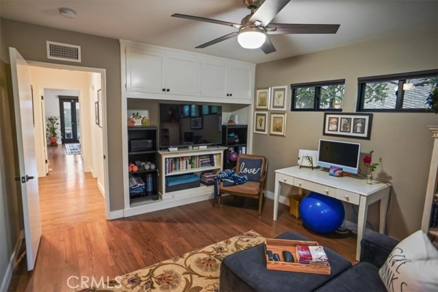 1902 total sq. ft. of functional living space inclusive of the California Room. 606 Uclan Drive epitomizes California Resort Living with thoughtfully completed upgrades throughout. The expanded chef’s kitchen features a large center island, walk-in pantry, Thermador and Bosch appliances, custom range hood, and a dedicated coffee/wet bar area. New Milgard fiberglass windows, sliders, and doors pair with Smith & Noble blinds for a fresh, cohesive look. Major system upgrades include a Lennox HVAC, composite roof, attic insulation, tankless water heater, copper plumbing, and a 200-amp service panel feeding a 200-amp subpanel via underground conduit. The backyard feels like a private resort with a redesigned pool and spa, Baja shelf, umbrella holders, and all-new energy-efficient Pentair equipment. The standout feature is the California Room—a partially enclosed, fully functional outdoor living space with a large ceiling fan and dual Sunpak heaters, creating a seamless indoor-outdoor experience. Additional highlights include custom bedroom closets, remodeled bathrooms, and custom redwood garage doors opening to a sound-treated studio with loft storage.