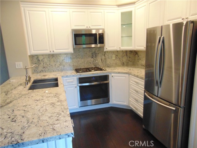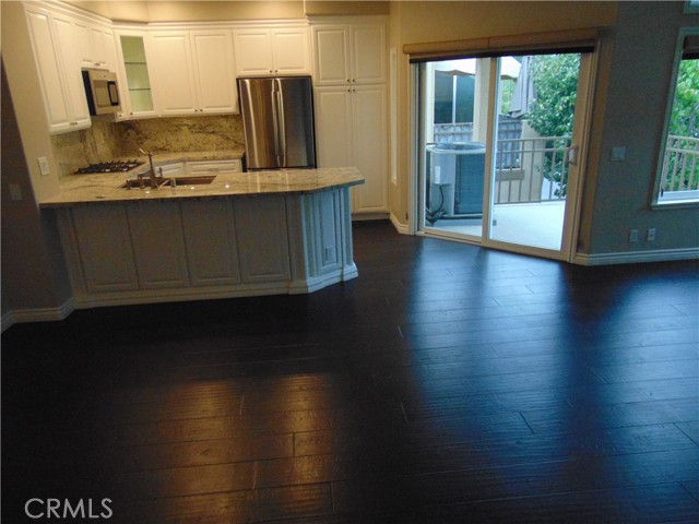 DESCRIPTION Carriage unit above the garages is end unit with only one shared wall. Front door on the end opens to landscaped slope that is quiet and secluded. Entry on ground level off the garage with stairs up to unit which is all on the second level. Balcony on one corner. Windows and doors give light and free airy feel. Unbelievable quality Italian wood floor is $25000 worth of Italian Hardwood, including stairway. Upgrades exceed expectations with new cabinets and granite counters in kitchen, bar and both bath vanities. Matching built-in entertainment center and dresser in master. Matching hardwood doors throughout including closet doors for second bedroom, which are on order. Master bedroom has walk-in closet off bath with tub. Kitchen nook in corner of the spacious great room has glass front display accent with under counter lighting. Kitchen has deep stainless steel chef's restaurant quality sink, stainless dishwasher and French door Refrigerator. Gas cooktop with oven below and microwave with fan vented to exterior. Fabulous stone-look tile on fireplace with custom mantle. REALLY amazing upgrades. Pictures do not do it justice. Dining area at top of landing opens into a Great room. Milguard dual pane windows and slider with custom block out blinds.