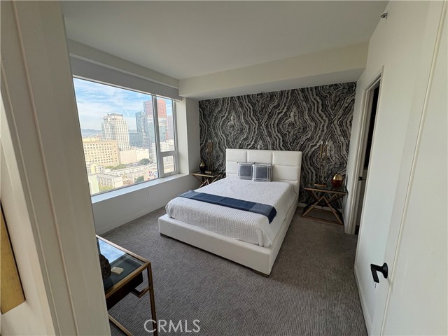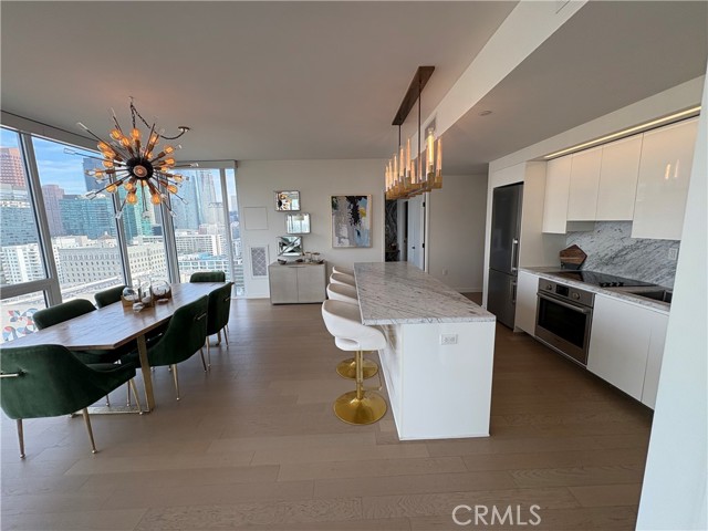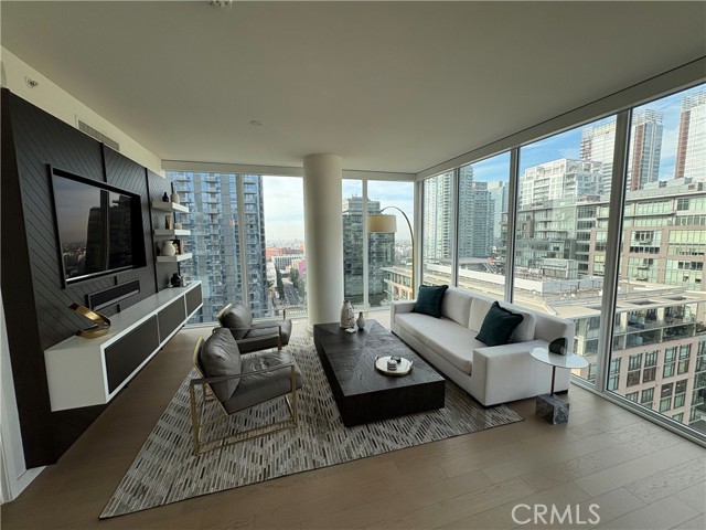Experience refined urban luxury from the 18th floor of the highly coveted TEN50LA residence, where contemporary architecture meets breathtaking panoramic views of Downtown Los Angeles. This fully furnished southwest corner residence embodies sophistication, offering a seamless blend of comfort, elegance, and design integrity. The open-concept living space is framed by floor-to-ceiling glass walls, capturing endless skyline vistas and natural light throughout the day. A chef’s kitchen anchors the home, meticulously crafted with Domus & Domus Italian cabinetry, a Bertazzoni cooktop, Liebherr refrigerator, Bosch panelized dishwasher, stainless-steel oven, and a striking Carrera marble waterfall island—a statement of artistry and function. The primary suite is a private sanctuary featuring automated blinds, a custom walk-in wardrobe, and a spa-inspired en-suite bath adorned with a floating dual-sink vanity, premium finishes, and sweeping city views. A secondary bedroom offers versatility for guests or a refined home office. Residents of TEN50LA enjoy access to an exclusive collection of amenities curated for the modern urbanite, including a 24-hour concierge, private theater, executive business lounge, resort-style heated pool and spa, and a state-of-the-art fitness center equipped with Peloton bikes. Two dedicated parking spaces complete this offering. Perfectly positioned in the heart of South Park, moments from LA Live, Crypto.com Arena, world-class dining, luxury shopping, and the city’s premier cultural destinations — with effortless connectivity to the 10 and 110 freeways and USC. A true testament to elevated city living, this residence redefines sophistication in Downtown Los Angeles.