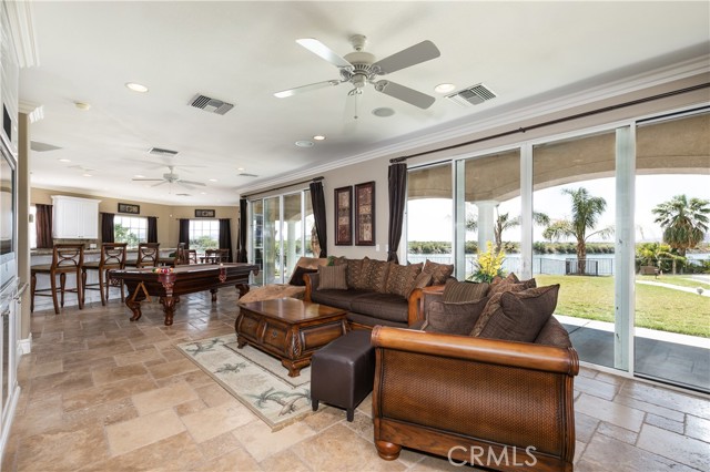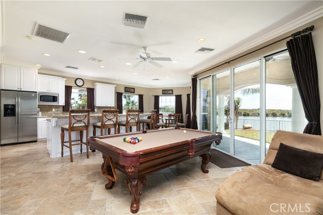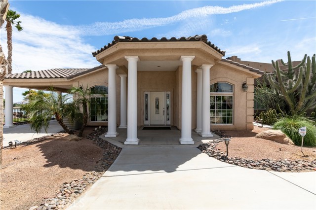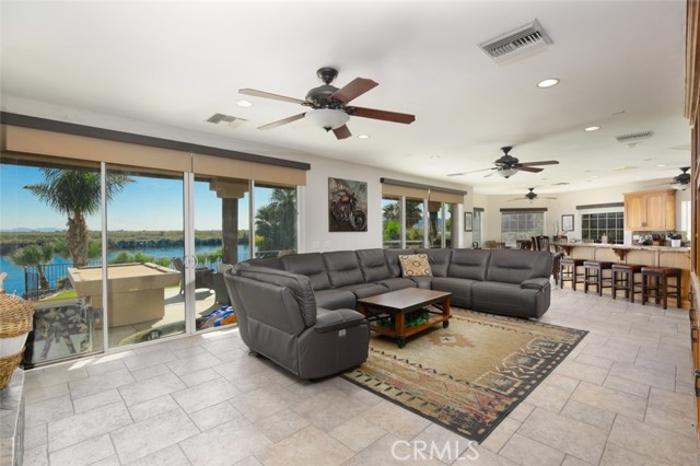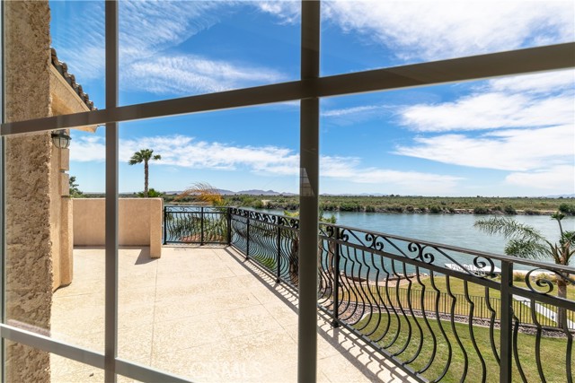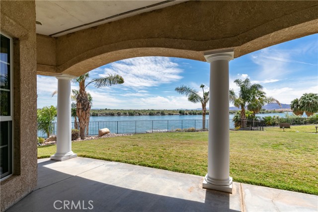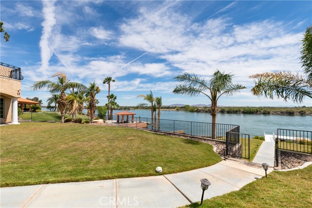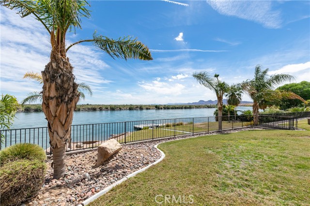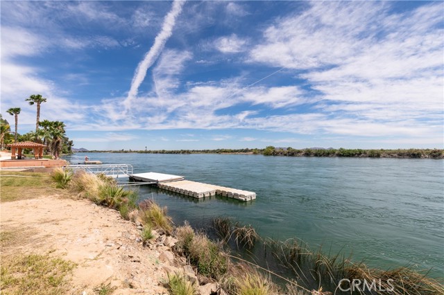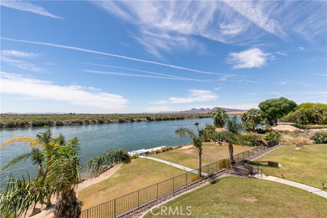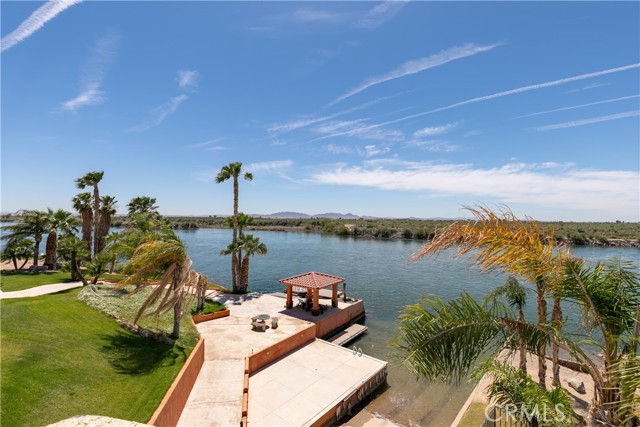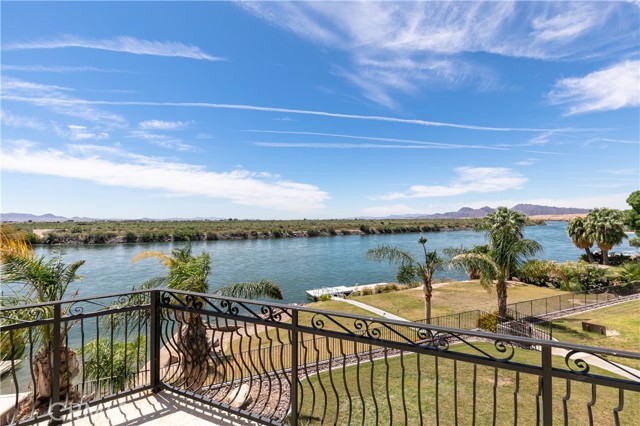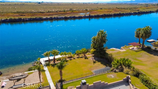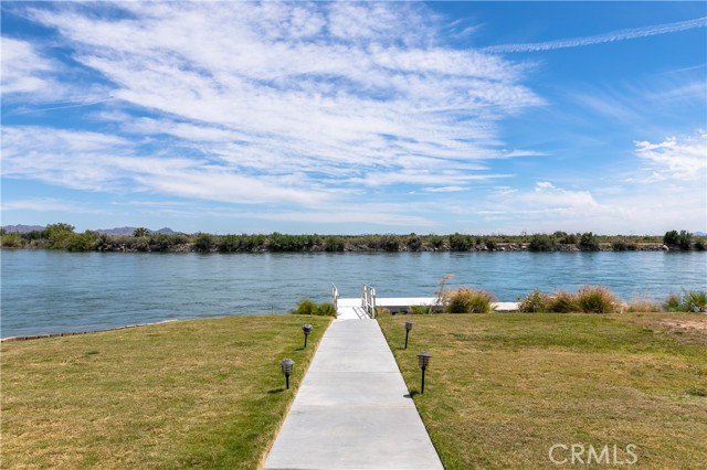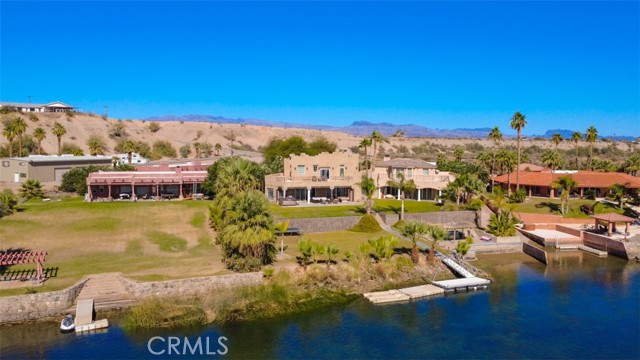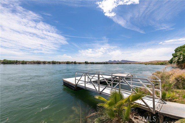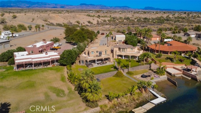 Look no further—THIS IS IT! The riverfront dream property you’ve been waiting for. This custom, furnished RIVERFRONT estate features TWO stunning homes on a 1+ acre parcel complete with a private launch ramp, boat dock, and sandy beach—the ultimate retreat for family, friends, or exceptional rental potential. Designed for entertaining, each home offers an expansive open-concept layout with impressive river views from every room. The main level features a spacious great room with pool table, a dining area, and a gourmet chef’s kitchen showcasing timeless cabinetry with pullout drawers, granite countertops, stainless steel appliances, and a massive breakfast bar perfect for gathering. Downstairs, the three generously sized bedrooms and two bathrooms provide plenty of comfort for guests. The entire upper level of both homes is dedicated to a private master suite, complete with a cozy fireplace and a large riverfront view deck—your own quiet sanctuary with unforgettable views. Beautiful upgrades include Versailles-pattern travertine flooring, raised panel doors, recessed lighting, surround sound, ceiling fans, custom baseboard and crown molding, built-in entertainment center, reverse osmosis, water softener system, and more. Both homes come fully furnished and ready for immediate move-in or rental use. A massive 36' x 33' detached 6-car garage provides separate garage doors for each owner, plus two RV spaces with full hookups. Electricity is metered separately, while both homes share costs for property taxes, water, leasehold, and maintenance. Easy access to miles of open desert makes this a perfect base for ATV and outdoor recreation. Land lease is only $384/year. Truly a rare and exceptional riverfront opportunity—don’t miss your chance to own this one-of-a-kind retreat!