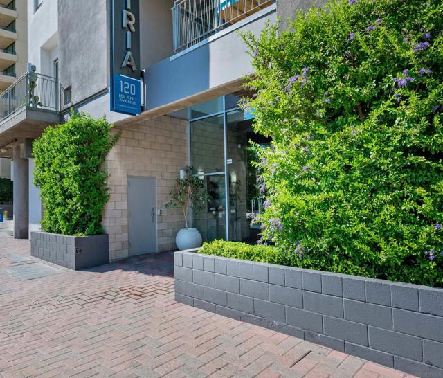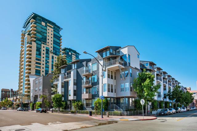 Large studio-style condo in Atria! This spacious west facing studio has washer/dryer, walk-in closet, quaint patio with city views, one parking spot, & AC. Residents enjoy Atria's close proximity to Ralph's, Seaport Village, Shopping & Downtown's many restaurants & nightlife. Atria centrally located in the highly sought after Marina District. Completed in 2002, Atria features 149 residences in two 4-story mid-rise buildings which include 101 Market Street and 120 Island Avenue These ultimate addresses offers easy access to the best the city has to offer, including Petco Park, Seaport Village, and the Gaslamp District for entertainment, dining, and shopping. Atria amenities include contemporary lobby, Secure Gated Building, state-of-the-art fitness center, meeting room, two rooftop lounges with BBQ's, gated underground parking, bike storage and security, and on-site property manager.