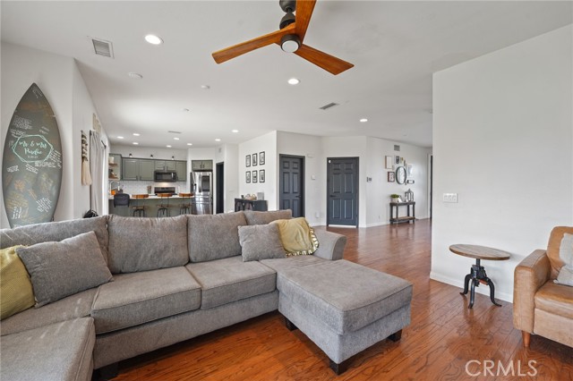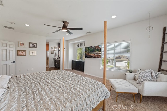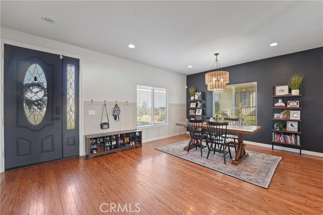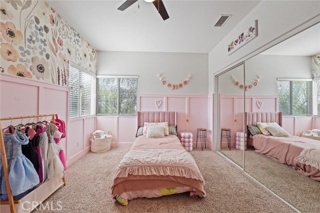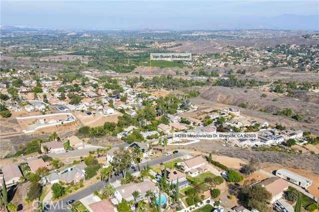 VIEWS! VIEWS! VIEWS! Welcome to 14289 Meadowlands Drive — a beautifully upgraded Riverside home featuring 3 bedrooms, 2.5 bathrooms, and 2,465 sq ft of living space on an expansive 8,276 sq ft lot. From the moment you step inside, you’ll notice the unique design touches and thoughtful improvements throughout. You’re greeted by an inviting entryway with a formal dining room to the left. Continue into the heart of the home to find an open-concept living space with a bright kitchen, dining nook, and living room centered around a beautiful fireplace. The upgraded kitchen opens seamlessly to the main living area, creating a warm, welcoming space ideal for daily living and entertaining. You’ll love the huge walk-in pantry with custom checkered paint and abundant shelving for organization. Direct garage access adds everyday convenience — especially on those grocery-heavy days. Head upstairs to the oversized primary suite, featuring two closets, dual vanities, a separate soaking tub and separate shower, and a private toilet closet. Large corner windows bring in incredible natural light and stunning views you’ll never get tired of - especially on the Fourth of July. Secondary bedrooms are generously sized with custom paint and great storage options. A spacious landing provides the perfect spot for a desk or cozy reading nook, and the upstairs laundry room also features custom paint and upgrades. Multiple updates have been completed throughout the home, offering comfort, style, and peace of mind. This home also has newer leased solar panels, providing energy efficiency and cost savings. The large backyard includes a swingset, fruit trees, and ample space to relax, play, garden, or reimagine into your dream outdoor retreat — perfect for entertaining, pets, or future enhancements. Located in a desirable neighborhood close to shopping, dining, parks, and commuter routes, this home blends character, upgrades, and space in a fantastic Riverside location.