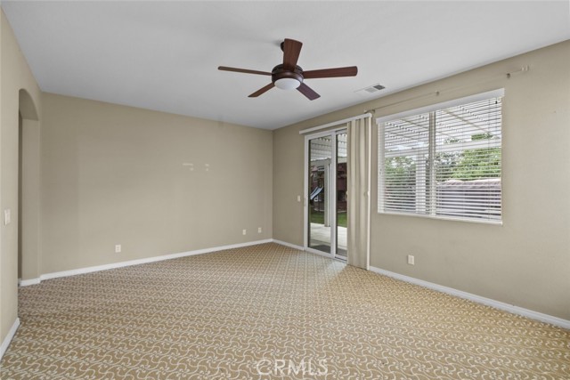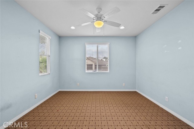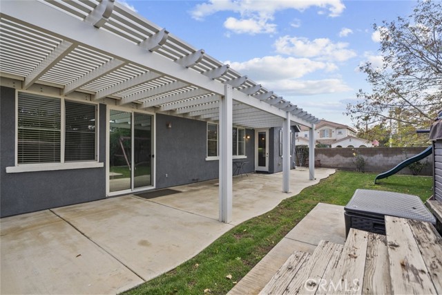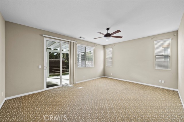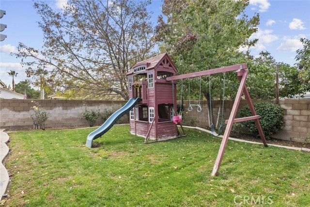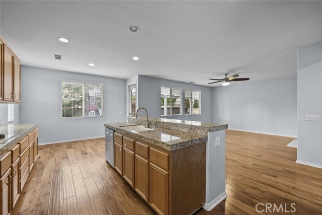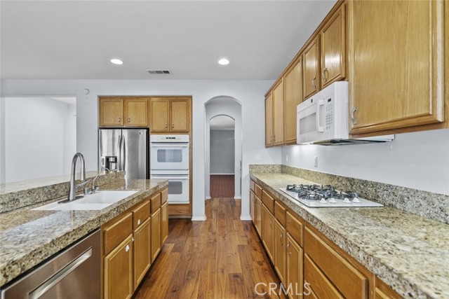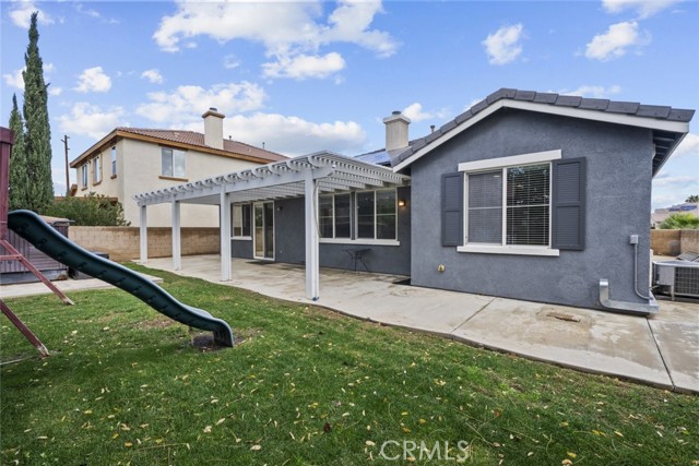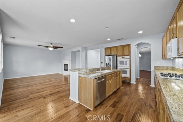 Welcome to this spacious and beautifully maintained 3-bedroom, 3-bath home featuring an additional bonus room perfect for a home office, guest space, or playroom. Offering 2,684 sq. ft. of comfortable living space on an 8,457 sq. ft. lot, this home is filled with desirable upgrades including hardwood floors, high ceilings, recessed lighting, and ceiling fans throughout. The open-concept kitchen boasts granite countertops, stainless steel appliances, a double oven, and plenty of cabinet space, ideal for everyday cooking and entertaining. Enjoy cozy evenings in the inviting living room complete with a fireplace. The primary suite features a walk-in closet, a relaxing soaking tub, and a separate shower for added luxury. Solar panels (leased) provide energy efficiency and cost savings. Outside, the property offers both a front and backyard, including a covered patio, green lawn, and a cemented area perfect for outdoor furniture and gatherings. The attached 3-car garage provides plenty of parking and storage space. This home truly has it all, comfort, style, and functionality.