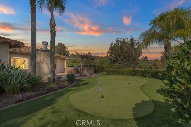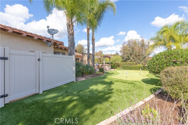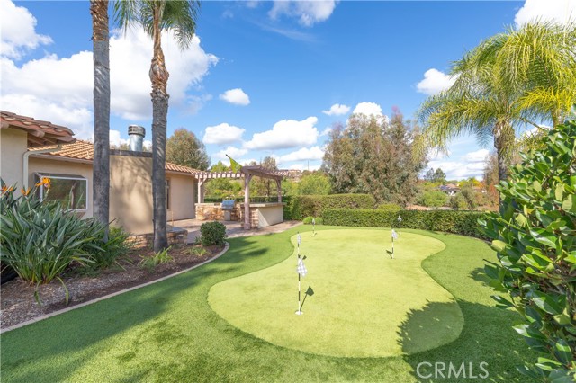 Located in Sycamore Ranch is a sprawling single level with exquisite features and high-end finishes, offering comfortable living both inside and out. As you approach, you are greeted by a courtyard where you can unwind while watching the sunset. When you enter the home, notice the stunning view behind the formal living room. A dedicated office and formal dining room are on each side of the entry. The kitchen is breathtaking with light custom shaker cabinets, soft close drawers and doors, and a center island with vegetable sink. The quartz countertops complement the cabinets and are a gorgeous contrast against the rich engineered wood flooring. The matching stainless steel KitchenAide appliances include: built-in wall oven, microwave, built-in range, trash compactor, and dishwasher. Socializing during gatherings or a full house is easy as the kitchen connects to the family room (with fireplace) and provides direct access to the side patio from the family room and kitchen. A full bathroom is conveniently located near the kitchen, dining room, living and family rooms and the third bedroom. On the other side of the home is the primary suite, another secondary bedroom, and bathroom. The primary suite is especially inviting, offering a large area for furniture placement, a built-in fireplace and access to another private patio with fire pit. The understated primary bathroom has neutral tile flooring, two closets (one located on each side of the room), a walk-in tile shower, private room with commode, separate sinks in granite top vanities, and a built-in makeup vanity. The secondary bedroom is separated by a hallway with storage and a bathroom. This bedroom sits at the front of the home and has an extra-wide closet with mirrored wardrobe doors and a full bathroom next door. The laundry room by the 3 car garage offers a deep sink, storage and either gas or electric hook-up for your dryer. Don't forget about the amenities outside! There is not only a courtyard in the front but two separate patios behind the fence. The side patio off of the kitchen and family room offers a fireplace, an island with seating, a plumbed gas grill and mini-refrigerator. There's also an opportunity to work on your putting skills in the side yard. Come see this beautiful home set around The Golf Club of California's golf course. Easy access to the beach, freeways, wineries, casinos, and more. Owned solar. No HOA, low taxes.