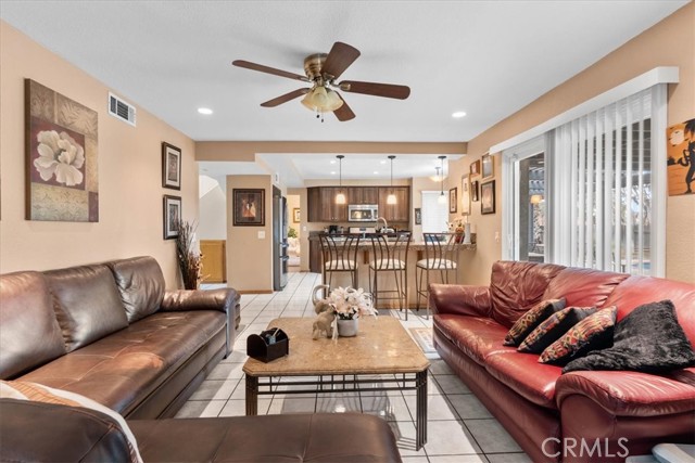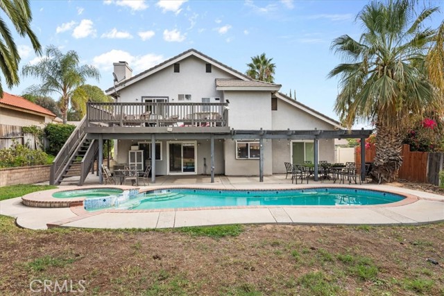 Now available! This spacious two-story home features a refreshing pool and spa, a covered deck/patio, and one of the largest rear yards in the community. The first floor offers a bright living and dining area with cathedral ceilings, along with a remodeled kitchen showcasing granite countertops and stainless steel appliances. The kitchen opens to the family room, providing a cozy view of the fireplace. Also on this level is a convenient half bath and direct access to the two-car garage. Upstairs, you’ll find a generous primary bedroom with an en suite bathroom featuring dual vanities and a walk-in closet. Two additional bedrooms and a full hall bathroom complete the second floor. Additional highlights include newer dual-pane vinyl windows, ceiling fans, and abundant driveway parking in addition to the attached garage. Located near schools, the 60 Freeway, and major employment centers, this home offers convenience, comfort, and room to relax.