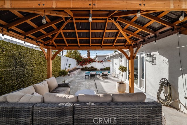 Impeccably upgraded single-story pool home in the desirable Canyon Crest neighborhood! Positioned on the corner of a tree-lined street, this beautifully maintained home offers 3 bedrooms, 2 baths, and a bright, seamless floor plan. Located within walking distance of shopping, grocery stores, and dining like Arcade Coffee Roasters and Handel’s Ice Cream, and just minutes from the stunning UCR Botanic Gardens, this home offers the perfect blend of comfort, convenience, and Southern California lifestyle living. The remodeled kitchen showcases upgraded cabinetry and appliances, quartz countertops, a large pantry, and a convenient dry bar—perfect for entertaining. Natural light pours in through dual-pane windows and two sets of French doors—one in the primary suite and one in the main living area—each opening to the backyard. A cozy double-sided fireplace warms the dining and living rooms, and both bathrooms feature double vanities for added comfort. The low-maintenance backyard is a true retreat. Enjoy year-round fun in the sparkling pool and spa. Relax under the shady gazebo and enjoy the large concrete patio. Out front, the oversized driveway provides ample parking, including space for a boat or RV.