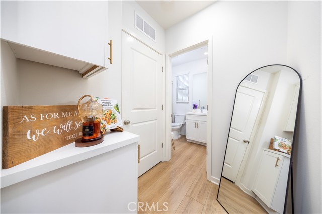 Discover a rare opportunity to own a builder model home, showcasing premium finishes and hand-selected designer upgrades throughout. This beautifully appointed residence offers 2 spacious bedrooms, 2 upgraded bathrooms, soaring ceilings, abundant natural light, and an open, airy layout designed for modern living. As a former model, the home features showroom-quality upgrades, including a gourmet kitchen with Bosch stainless steel appliances, upgraded “White Sand-N” quartz countertops, full-height backsplash, stacked cabinetry with under-cabinet lighting, and a single-basin sink. Additional enhancements include luxury vinyl plank flooring, designer-selected carpet and tile, LED recessed lighting, CAT-6 wiring, upgraded primary bath finishes, and a deck accessible from both the great room and primary suite. Energy efficiency shines with FULLY PAID-OFF SOLAR PANELS and interior insulation upgrades, delivering long-term savings and eco-friendly living. Situated in one of the community’s best locations, the home offers close access to greenbelts, trails, and amenities while maintaining a peaceful and private setting. Enjoy Portola Springs’ resort-style offerings: 15+ pools and spas, lush parks, tennis courts, baseball fields, sand volleyball, and miles of scenic walking and biking paths. Located minutes from shopping, dining, Irvine Spectrum, major freeways, and framed by the beauty of Loma Ridge, this home is also zoned for the award-winning Irvine Unified School District (IUSD), including top-rated schools. With its exceptional upgrades, model home quality, prime location, and paid-off solar, this residence delivers the perfect blend of luxury, convenience, and lifestyle in one of Irvine’s most desirable communities.